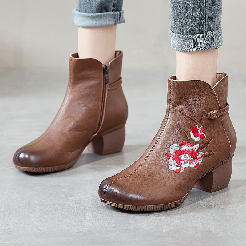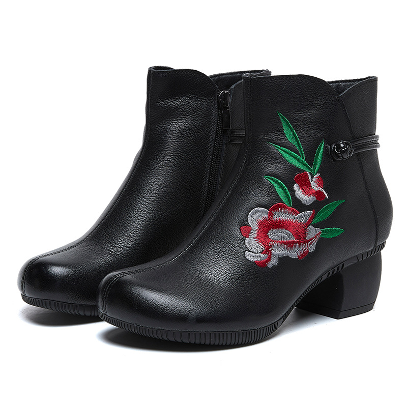 Fashionable Embroidered Comfortable Cotton Thick Heel Ethnic Style Martin Boots