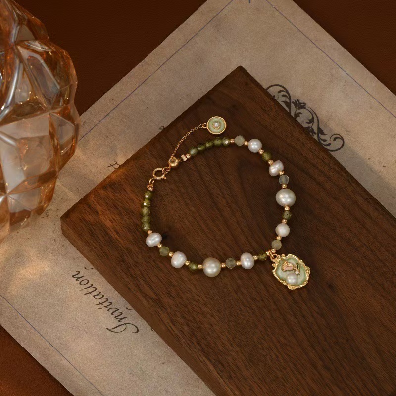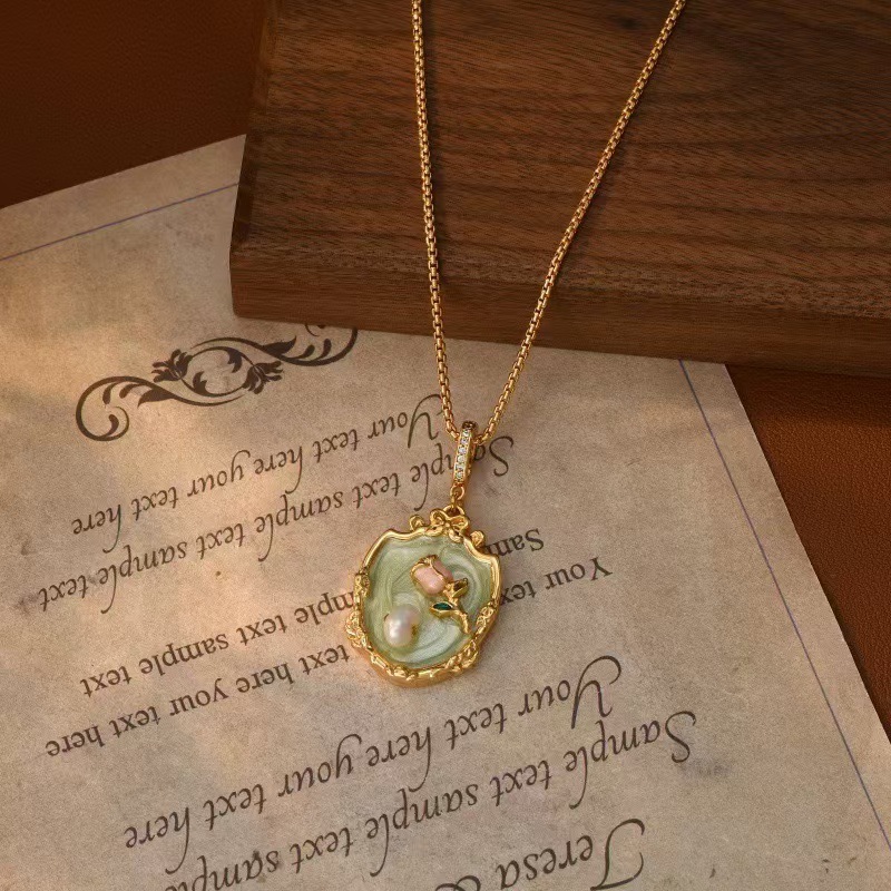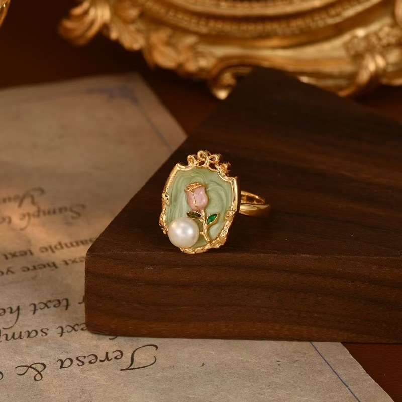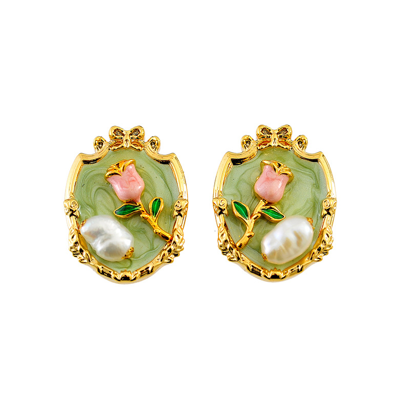 Fashionable Green Pearl Rose Drop Glazed Earrings