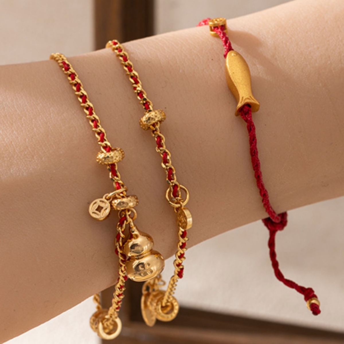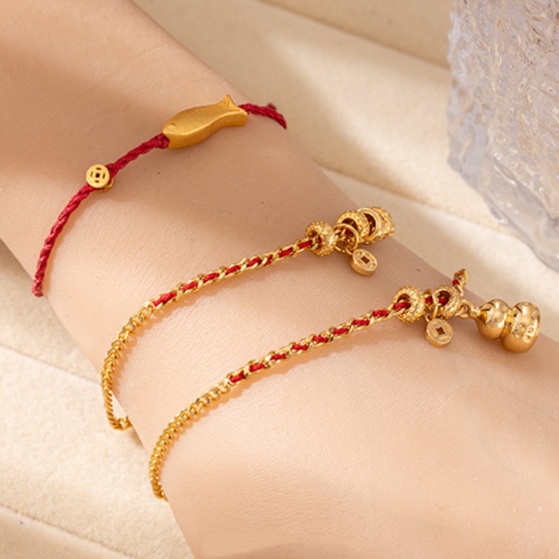 Fashionable Hulu Fu Yu Duo Pendant Red Rope Bracelet