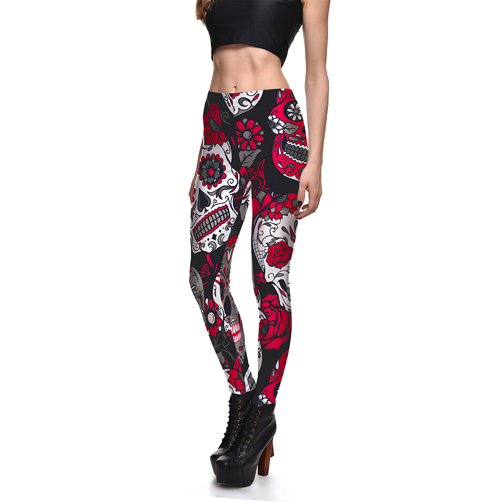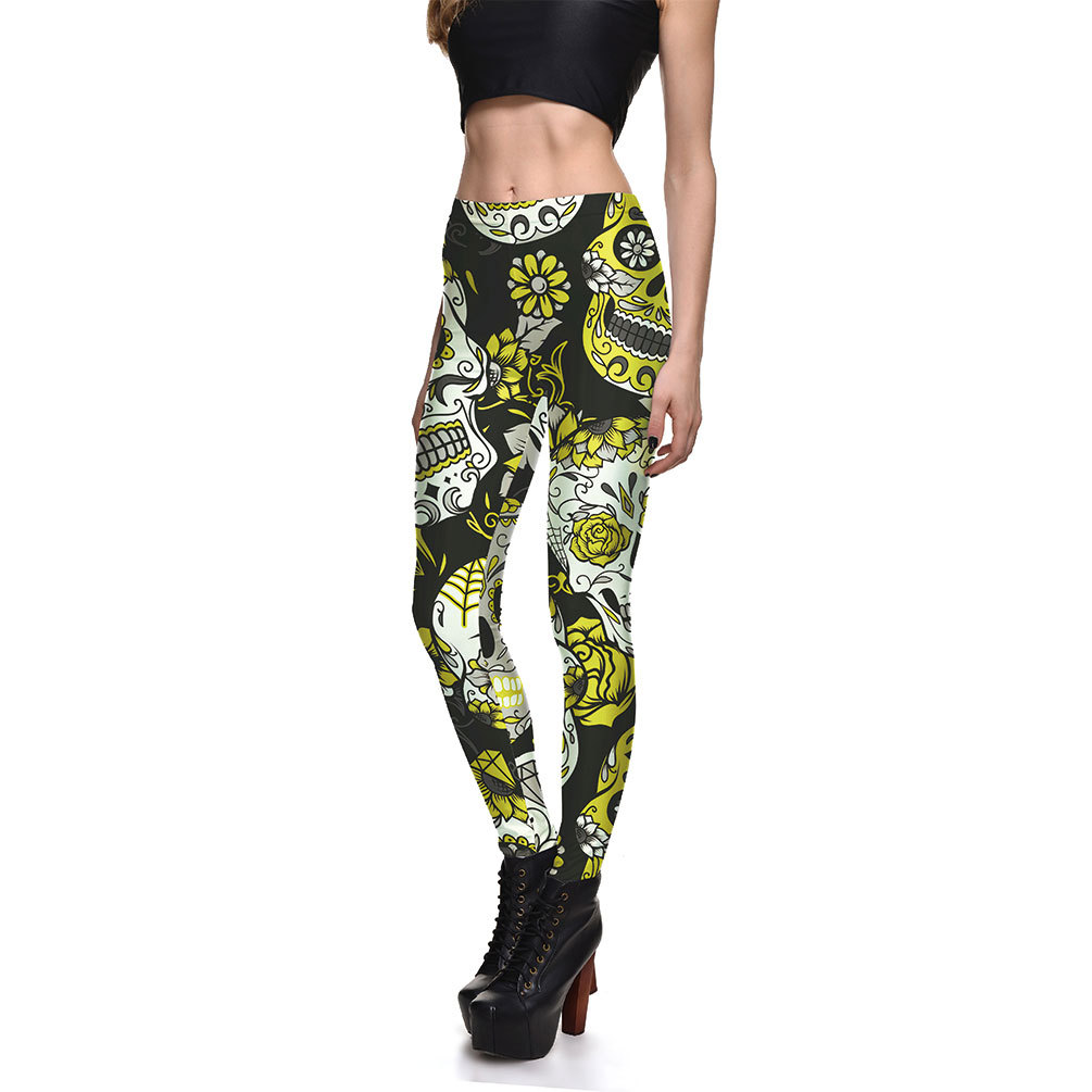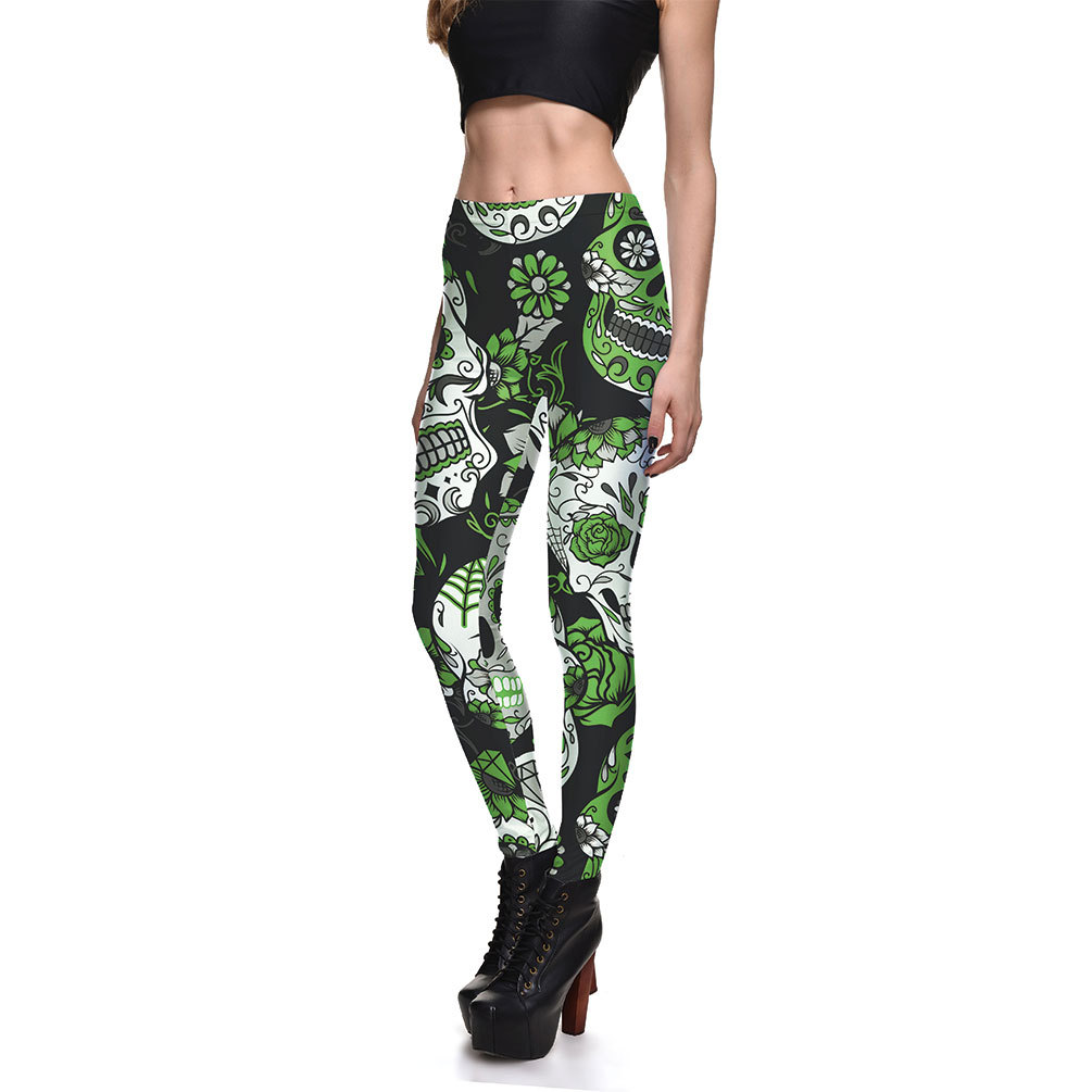 Fashionable Ladies Multicolor Skull Digital Printing Bottoming Cropped Trousers