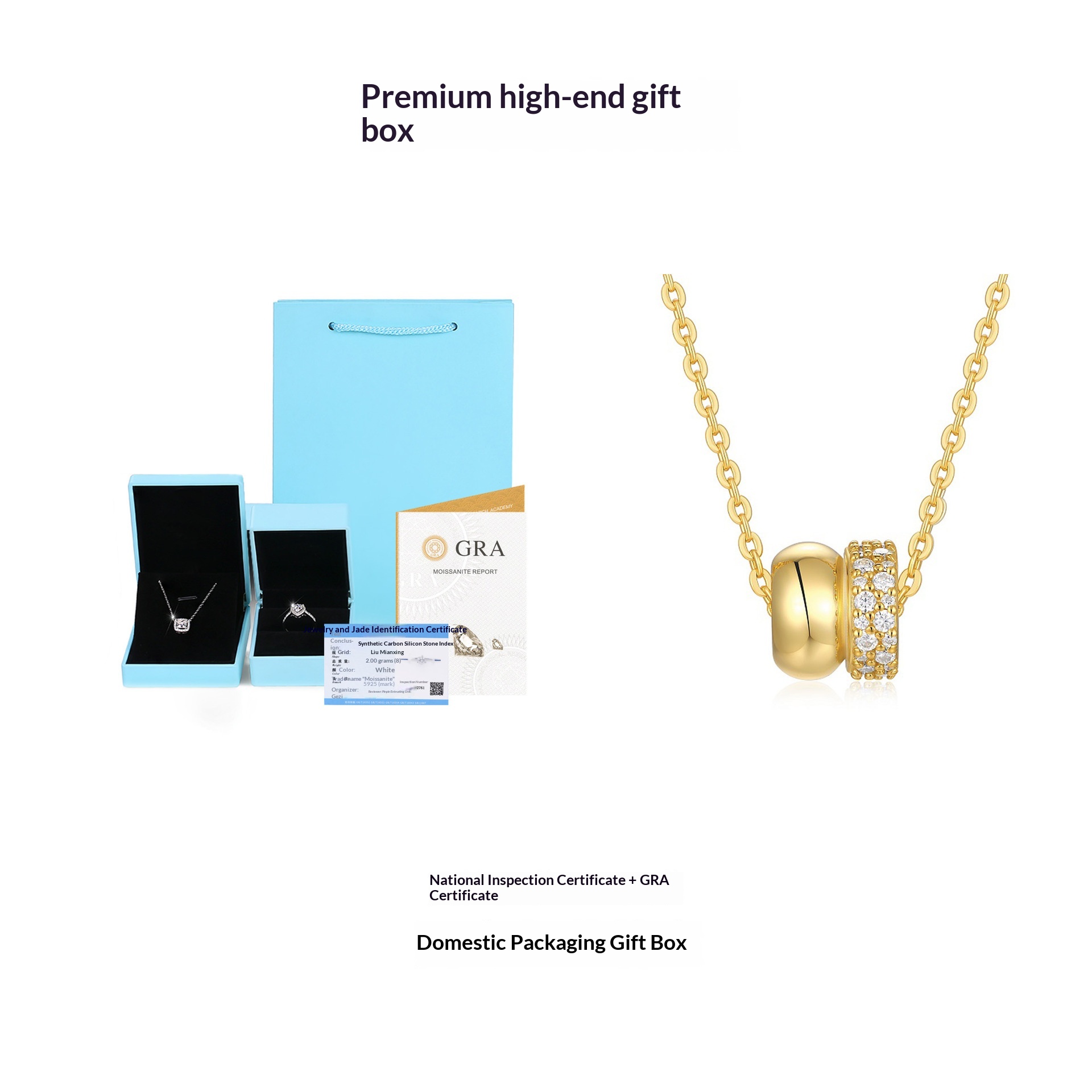 Color: Necklace, Necklace + White Packaging + GRA/Black Card, Necklace + Lighted Gift Box + Dual Certificates (National Inspection + GRA/Black Card)