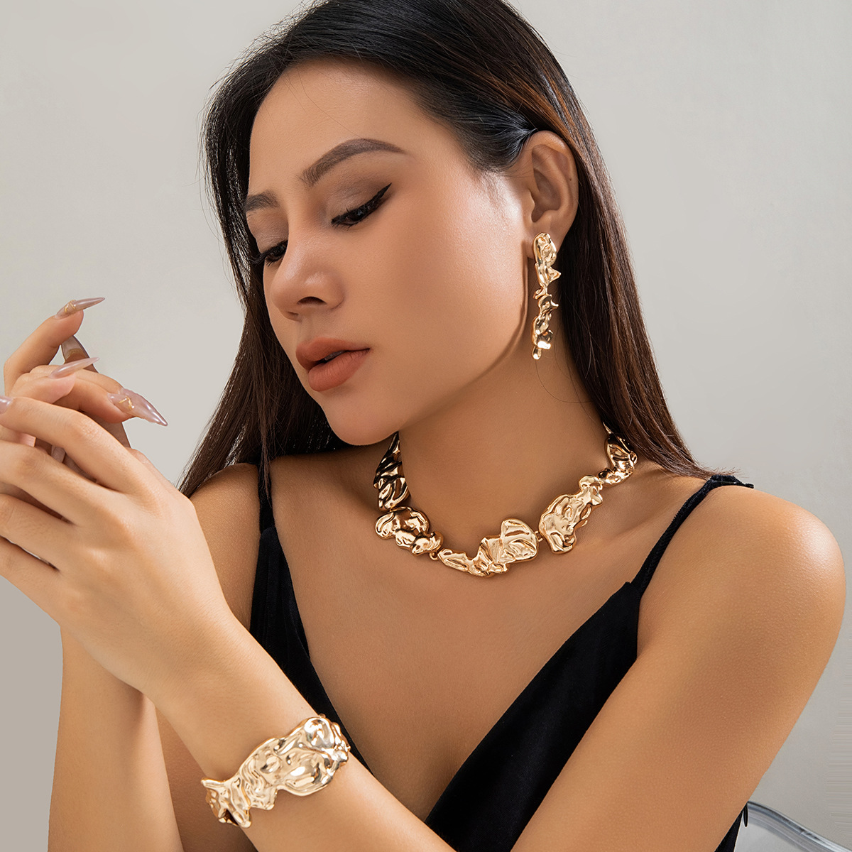 Color: necklace gold 6085, necklace White K 6085, stud earrings gold 3046, stud earrings White K 3046, Bracelet Gold 2270, bracelet White K 2270