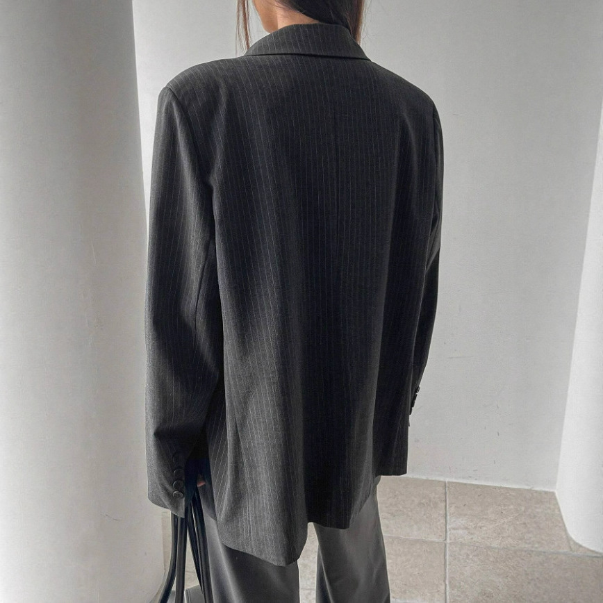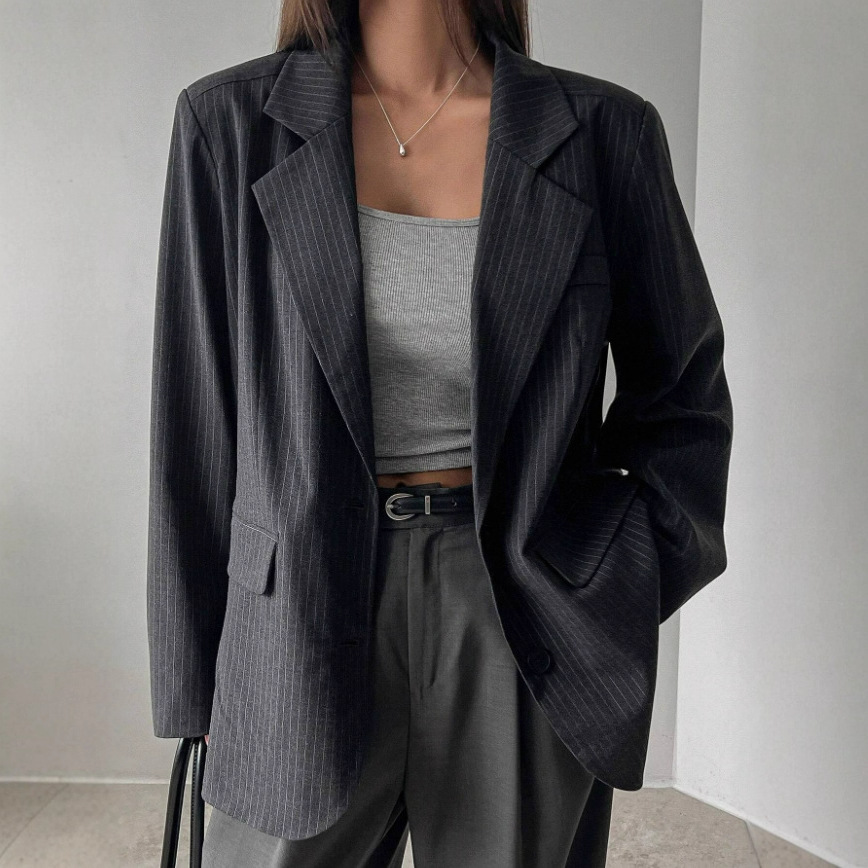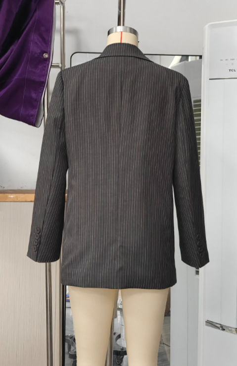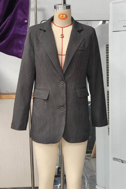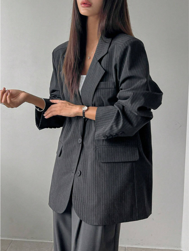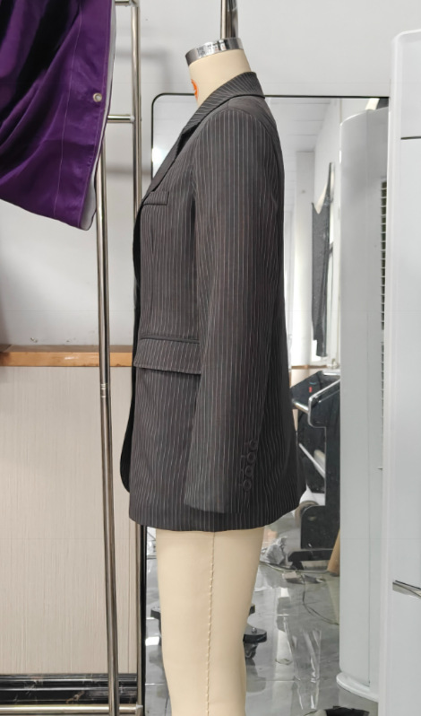 Fashionable Long Thin Striped Casual Women's Coat