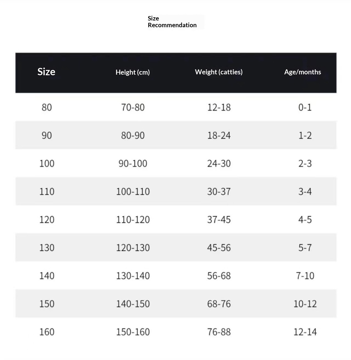 Suitable Heights: 90cm, 100cm, 110cm, 120cm, 130cm, 140cm, 150cm; Size 90 is suitable for a height of 80cm