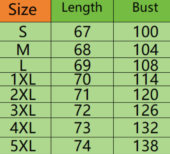 Sizes: S, M, L, XL, 2XL, 3XL, 4XL, 5XL
