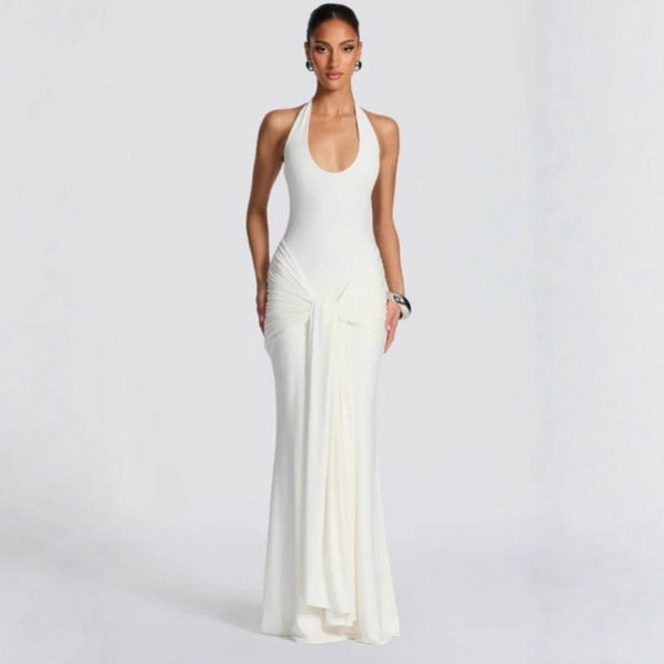 Trendy Elements: Open back, tie details, patchwork, pleats