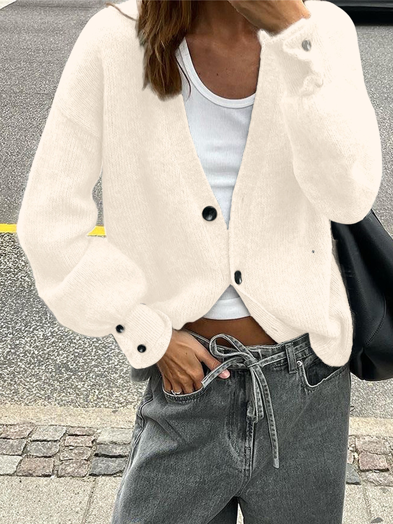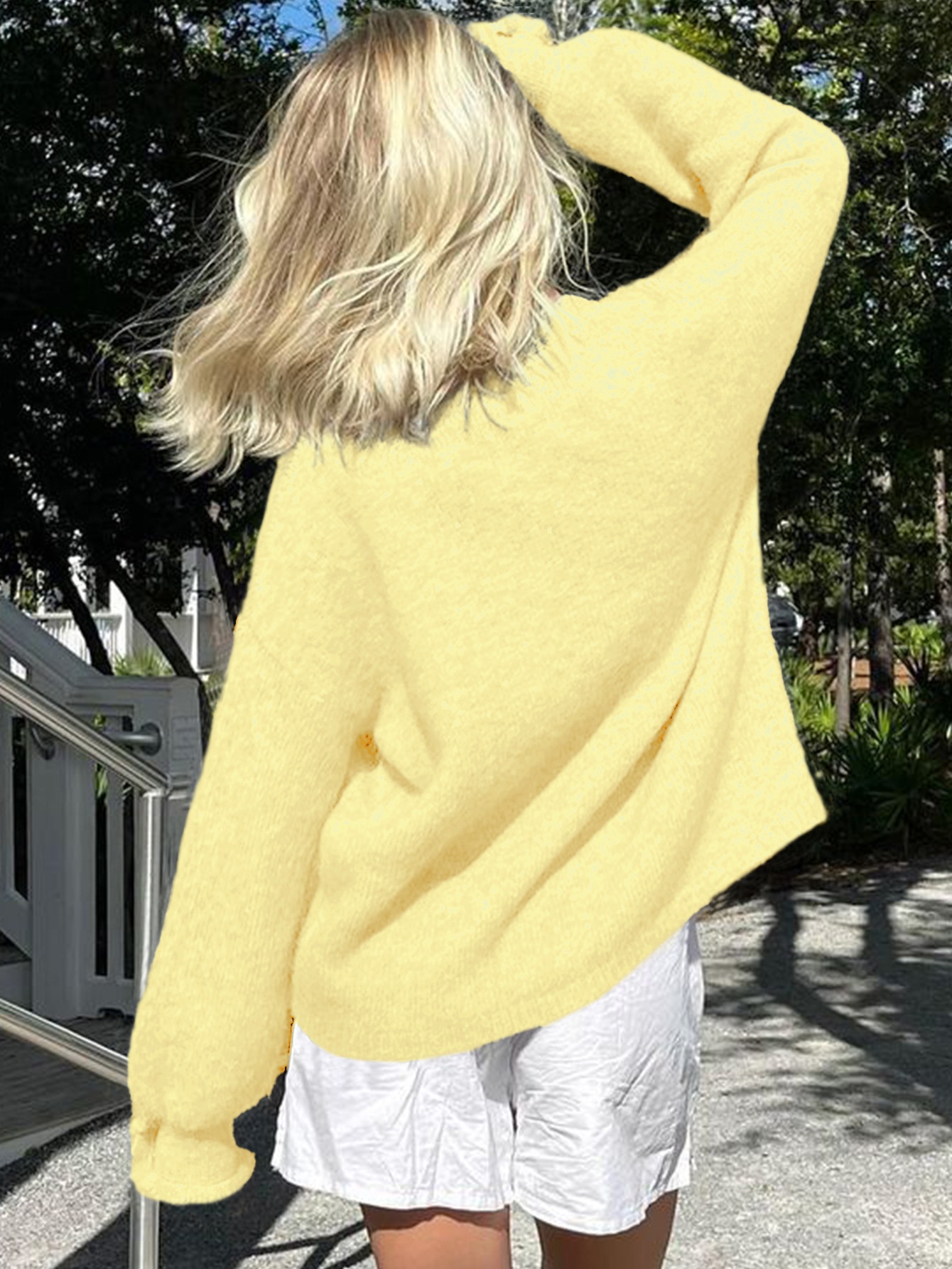 Fashionable Multi-color Sweater With Long Sleeves And Buttons For Women