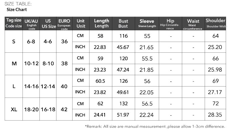 1. Asian sizes are 1 to 2 sizes smaller than European and American people. Choose the larger size if your size between two sizes. Please allow 2-3cm differences due to manual measurement. 2. Please check the size chart carefully before you buy the item, if you don't know how to choose size, please contact our customer service. 3.As you know, the different computers display colors differently, the color of the actual item may vary slightly from the following images.
