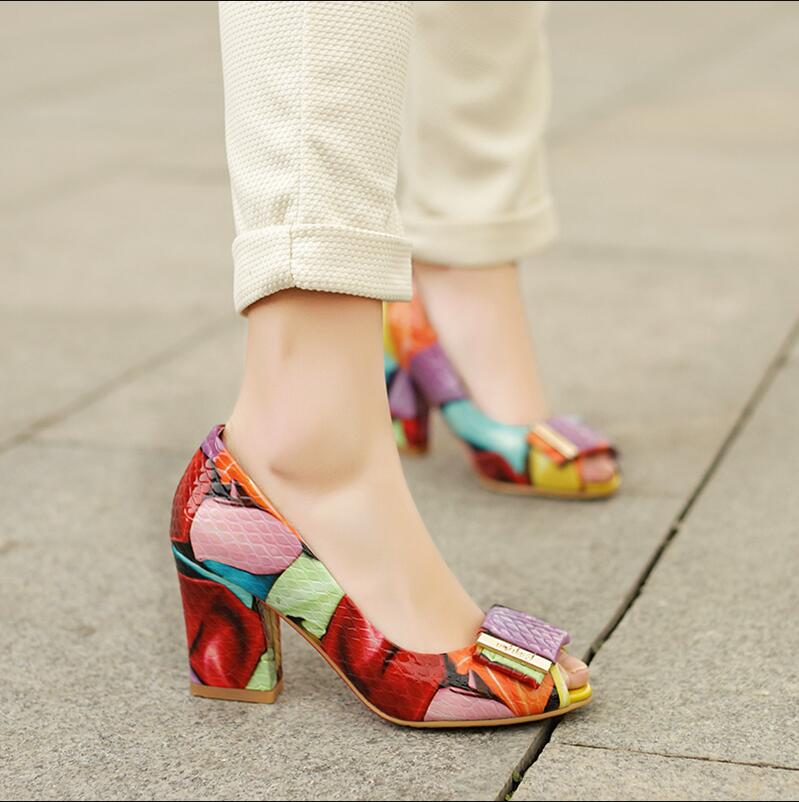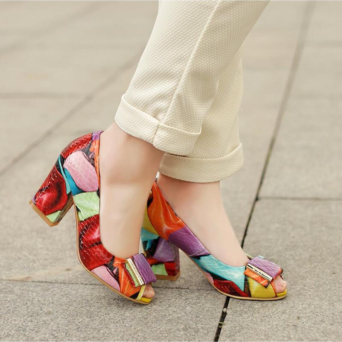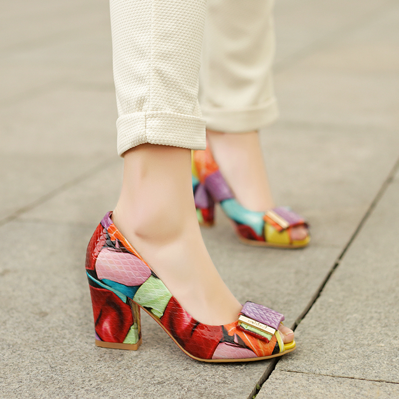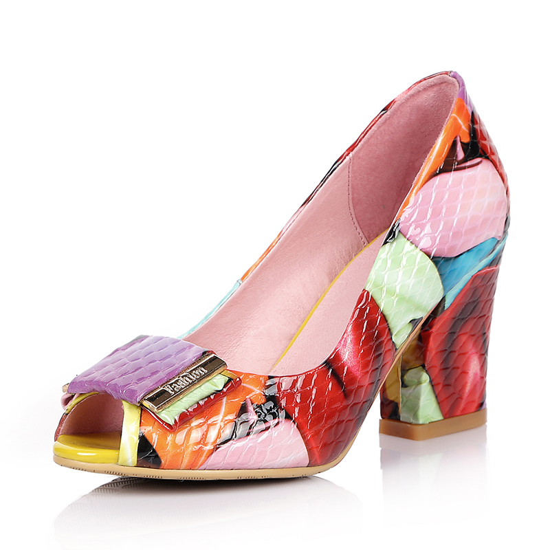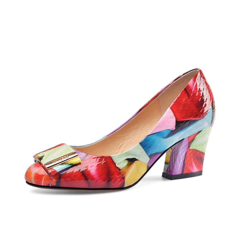 Popular element: color block thick heel metal