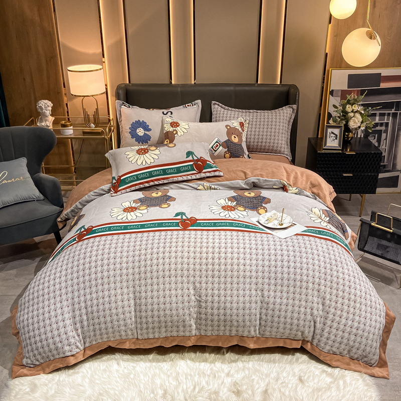 Size specifications: 1.2m bed (quilt cover 150*200) three-piece set, 1.5m bed (quilt cover 200*230) four-piece set, 1.8m bed (quilt cover 200*230) four-piece set, 2.0m bed (quilt cover 220*240) ) Four-piece suit, four-piece suit for 1.5 mat type, four-piece suit for 1.8 mat type (cm)