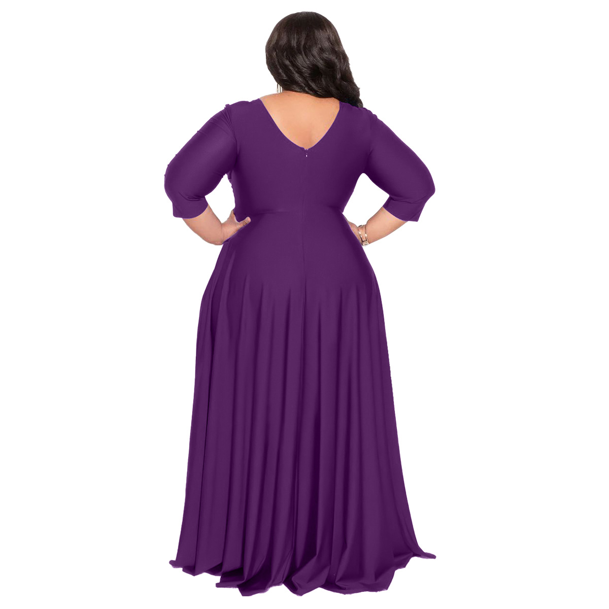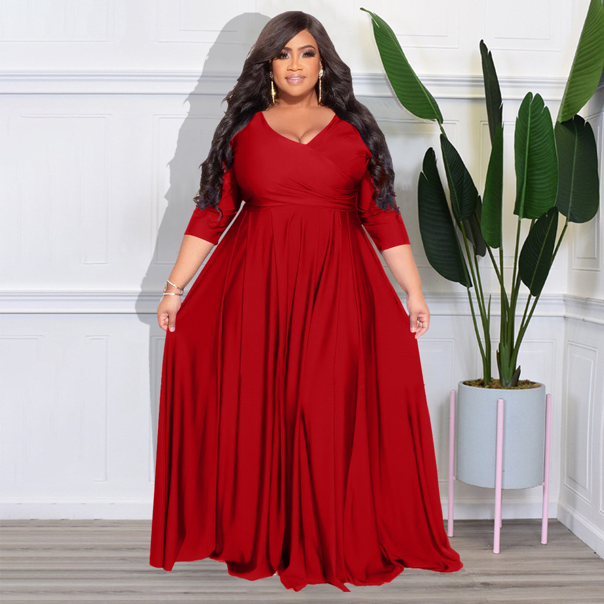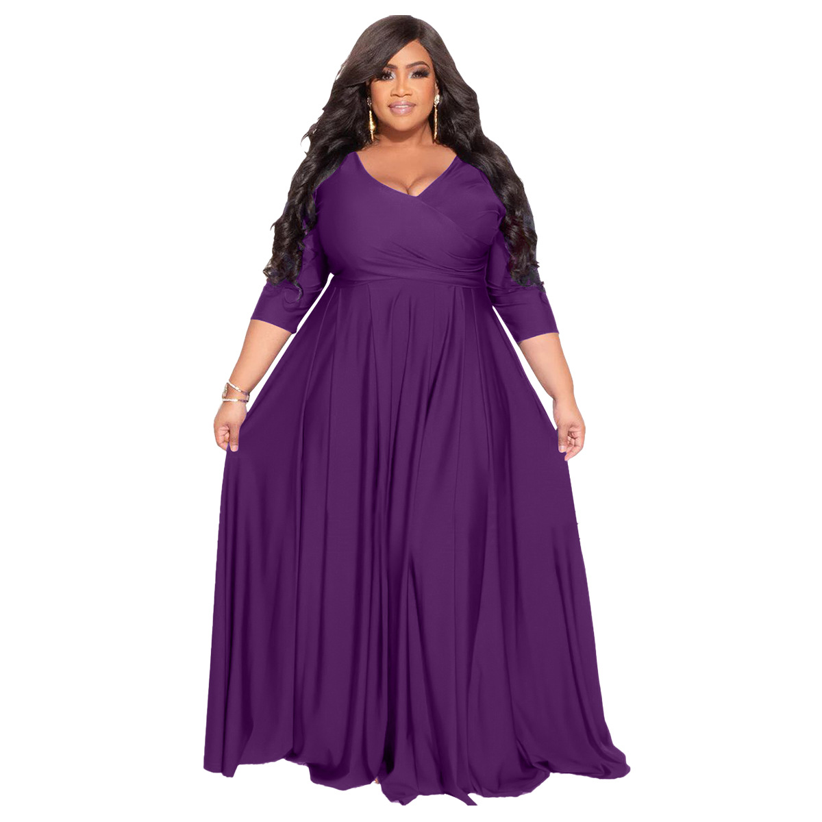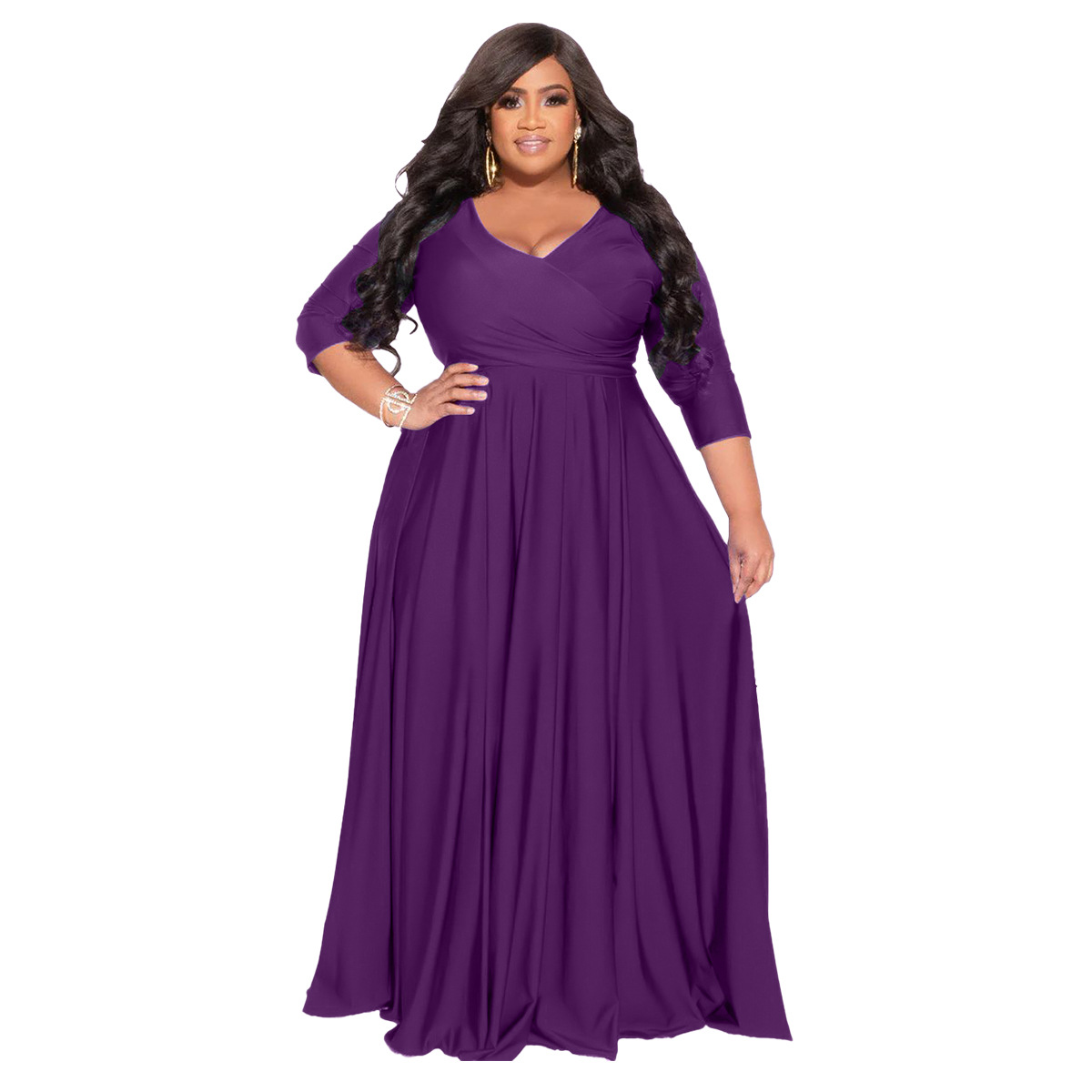 Fashionable Plus-Size Womens Solid-Colored Dress