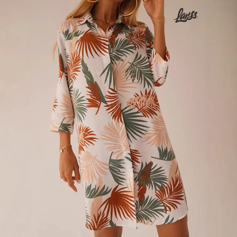 Fashionable Printed Lapel Cardigan Dress