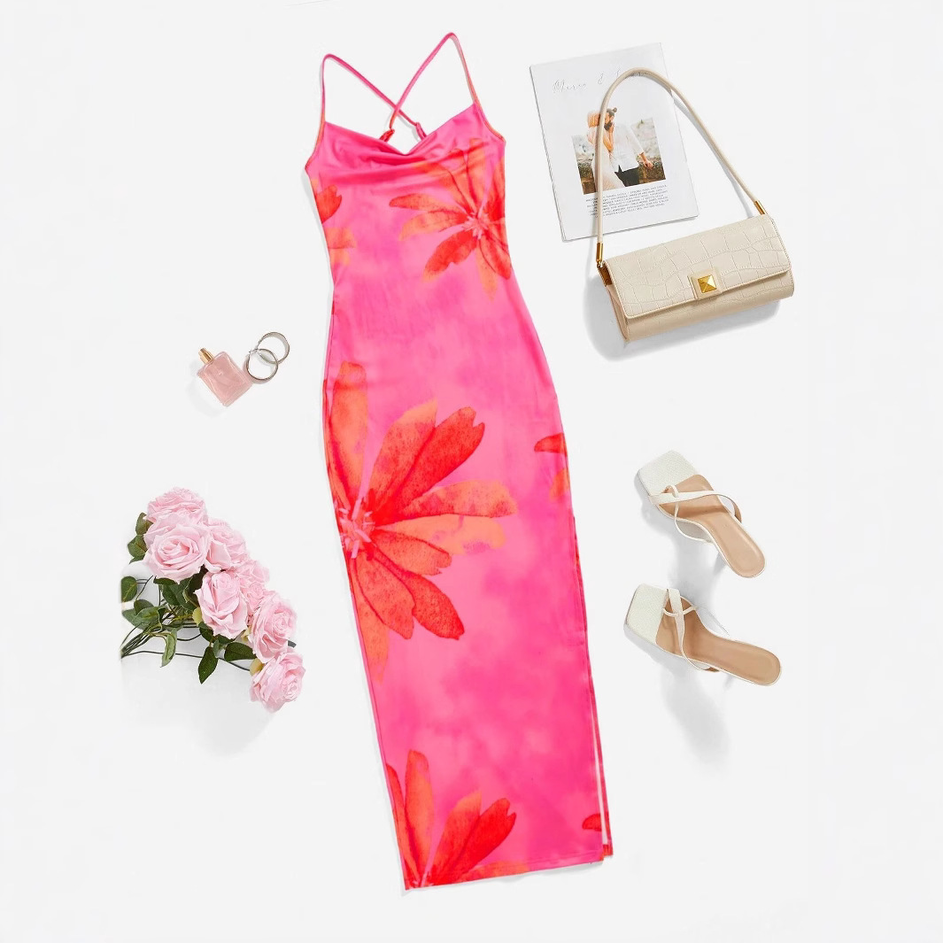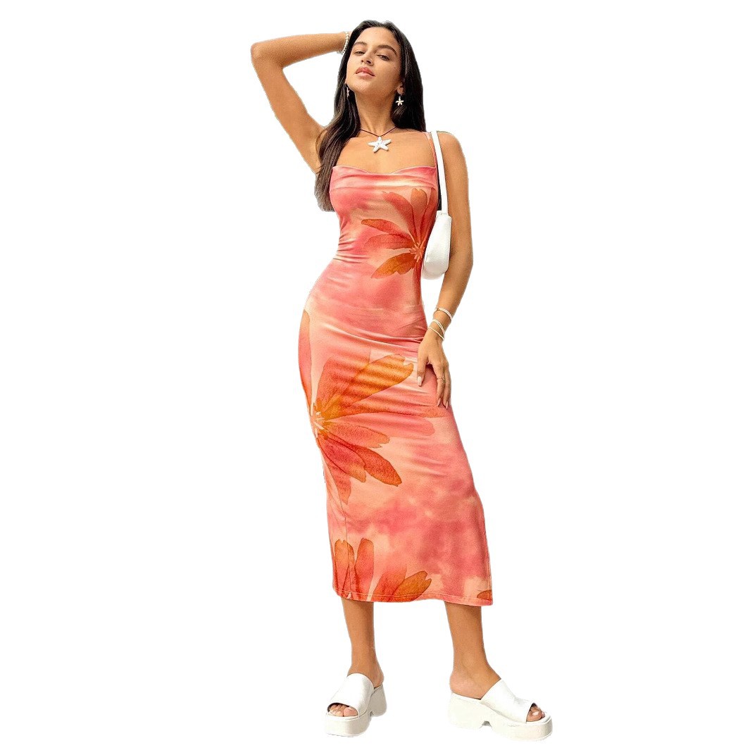 Fashionable Resort Beach Dress, Slim-Fit Printed Sleeveless Slip Dress
