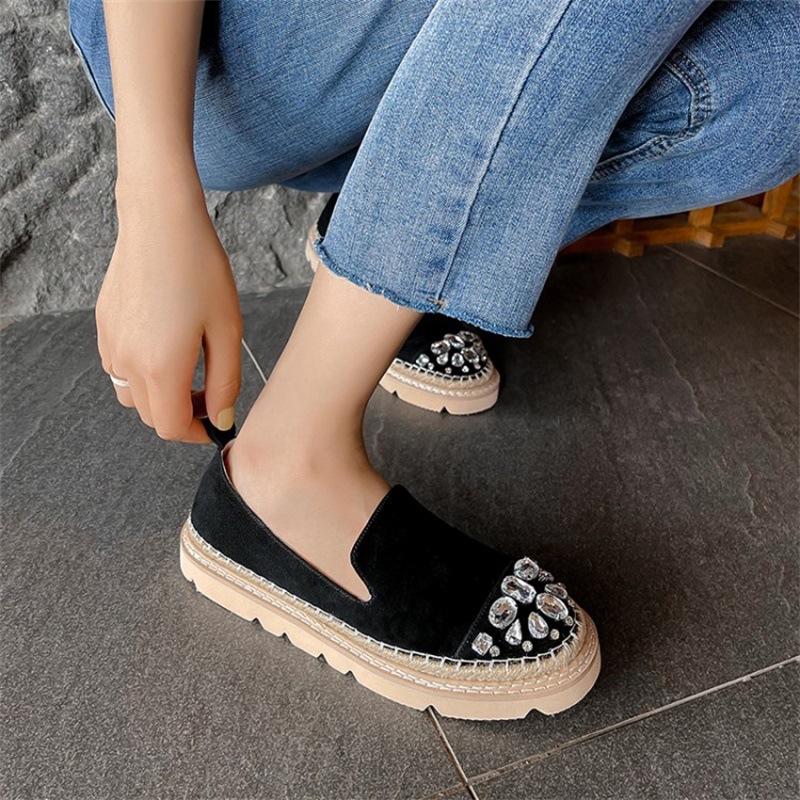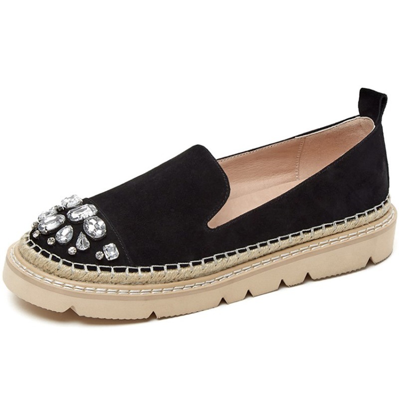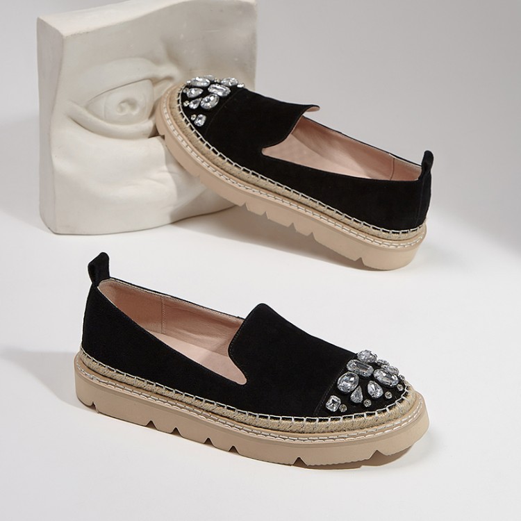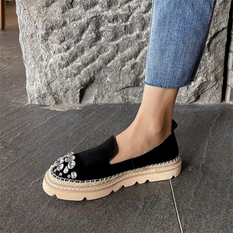 Fashionable Rhinestone Round Toe Comfortable Platform Loafers