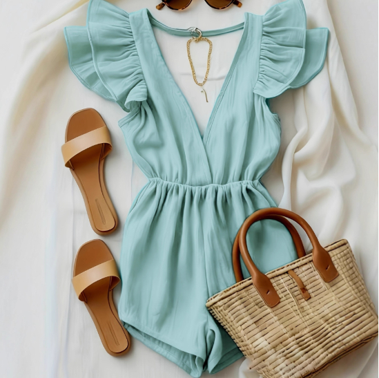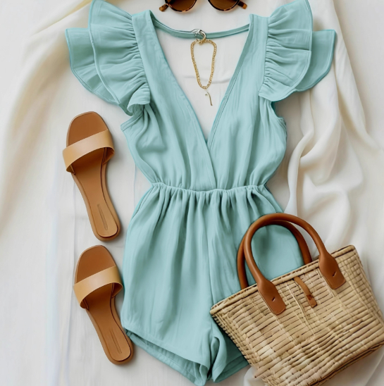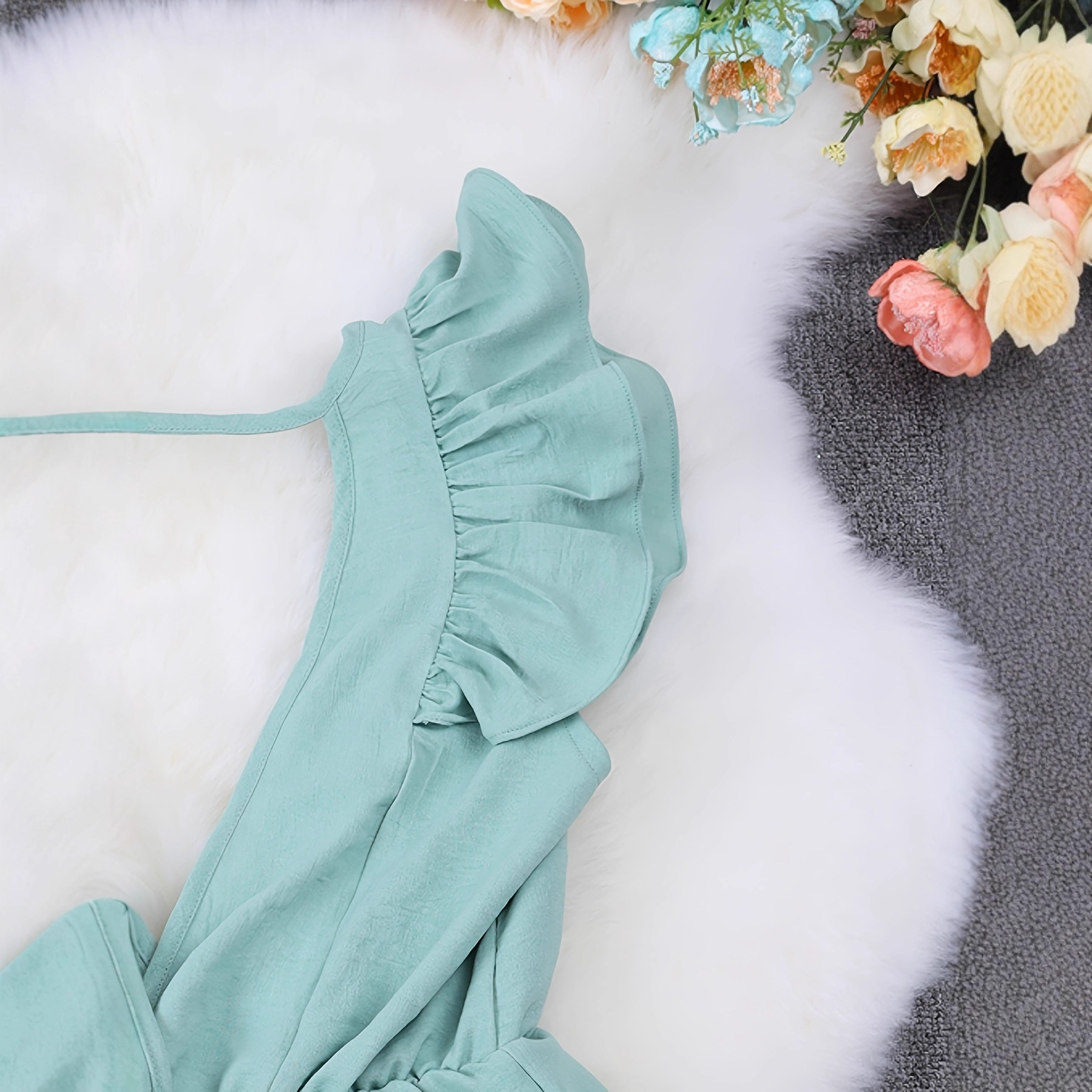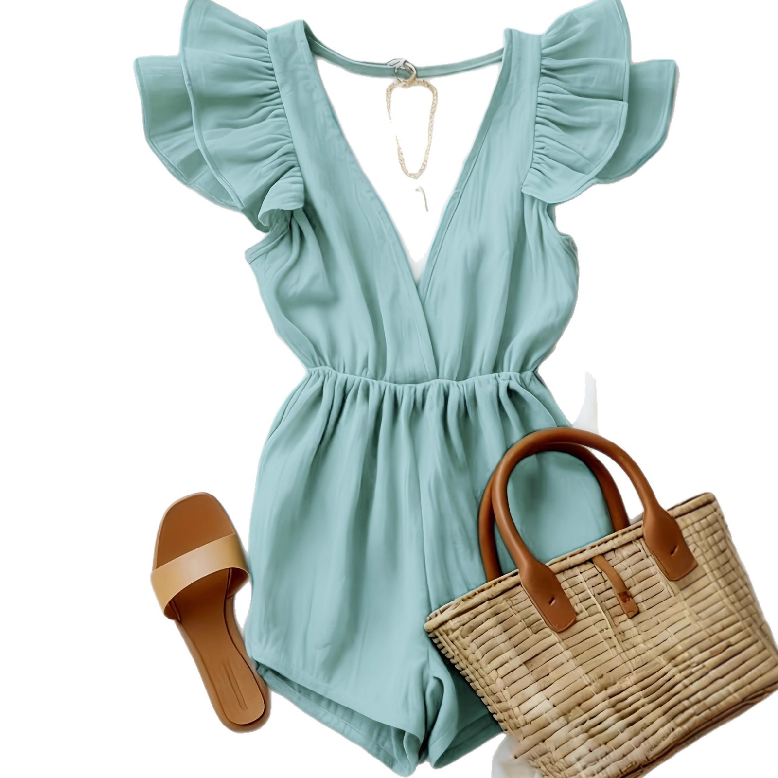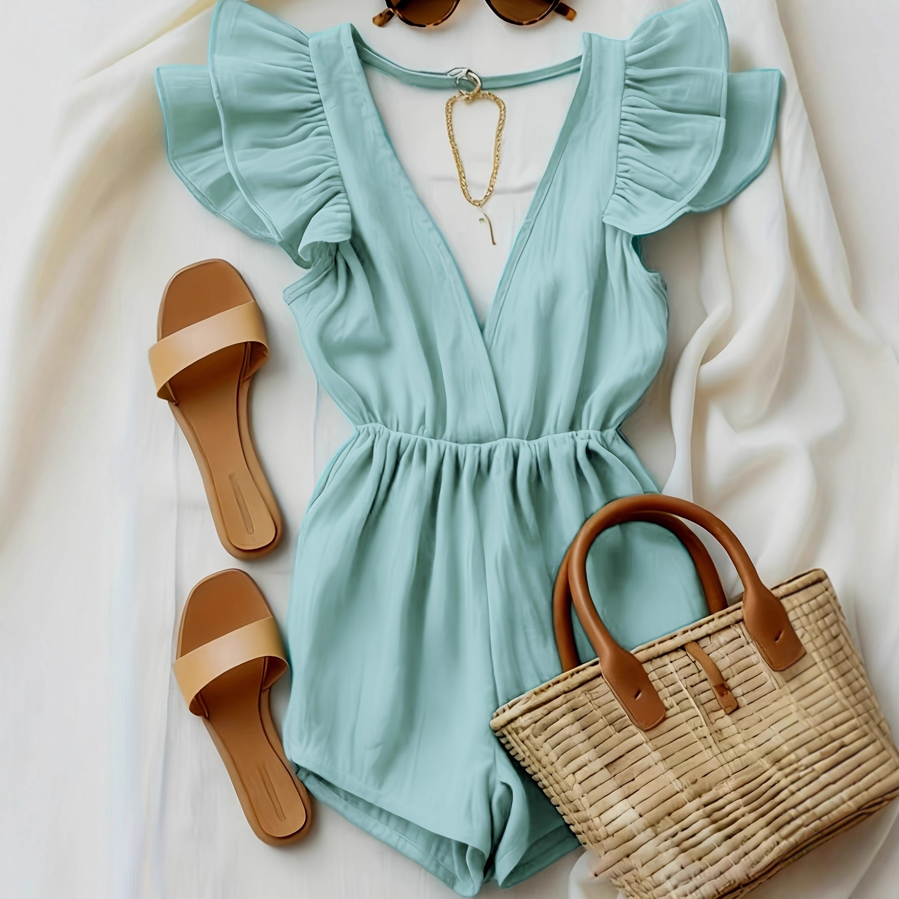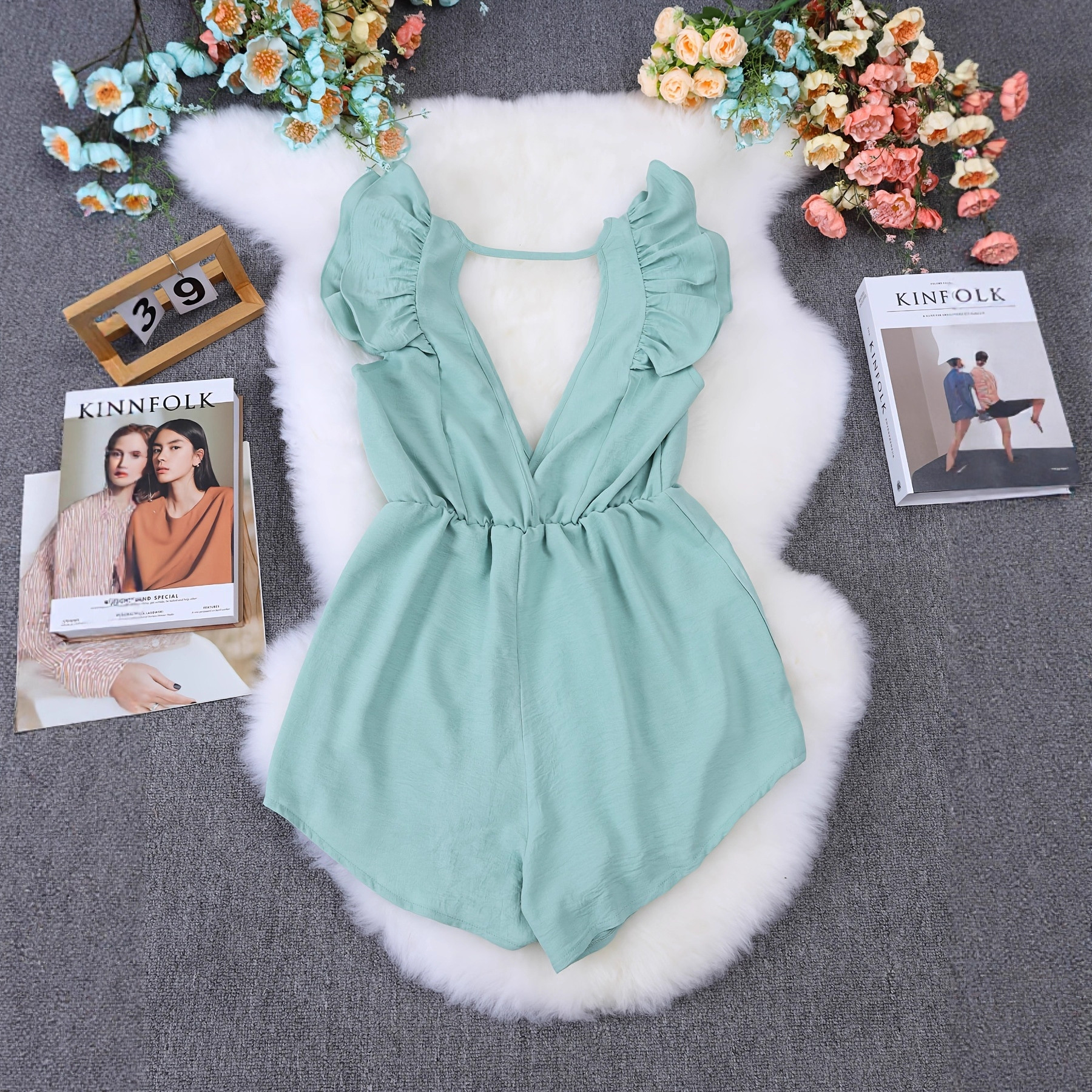 Fashionable Ruffled Deep V-Neck Backless Jumpsuit For Women