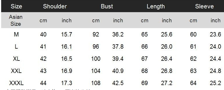 Asian sizes are 1 to 2 sizes smaller than European and American people. Choose the larger size if your size between two sizes. Please allow 2-3cm differences due to manual measurement.