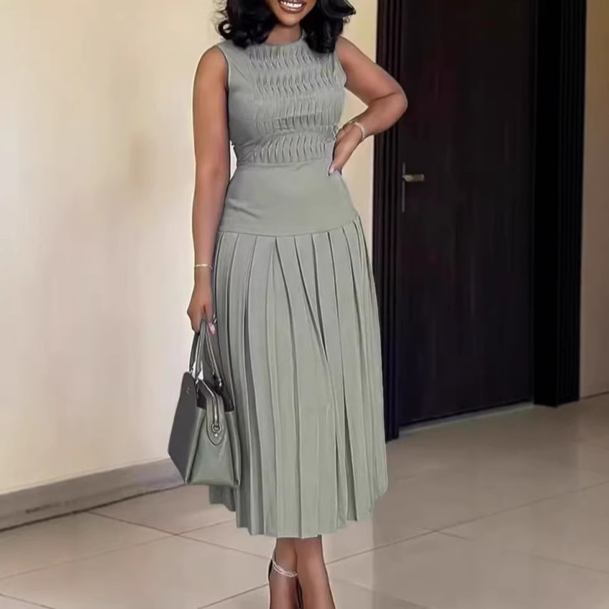 Fashionable Slim-fit Solid-color Dress For Women