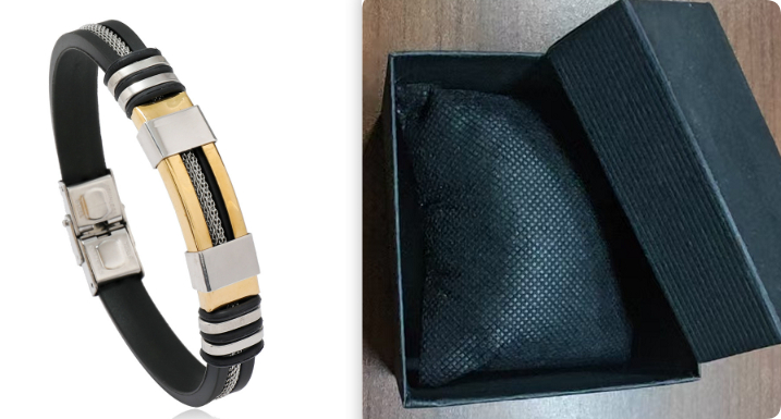 Colors: Electroplated Black, Pure Steel Color, Electroplated Gold, Black Bracelet with Box, Steel-Color Bracelet with Box, Gold Bracelet with Box