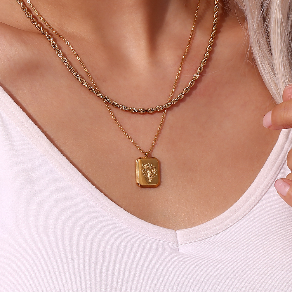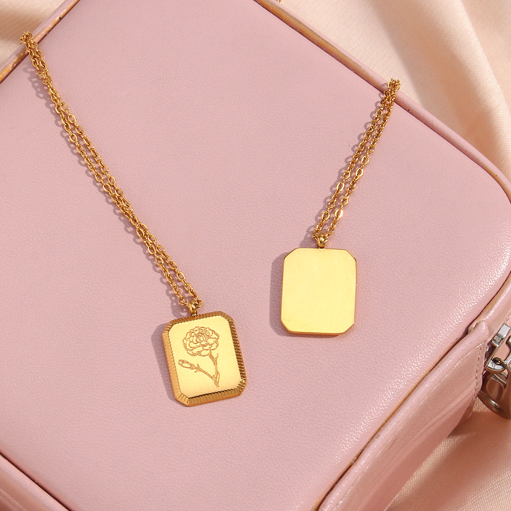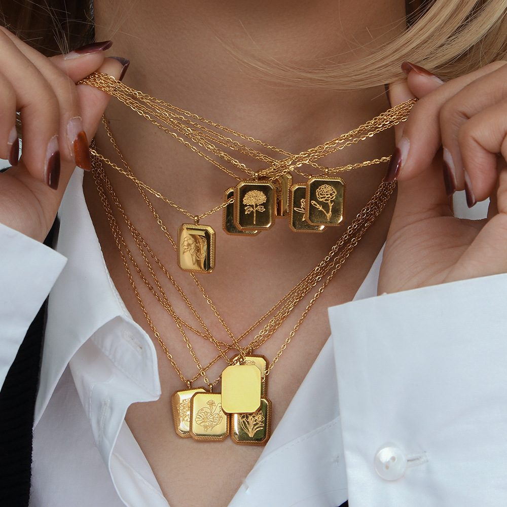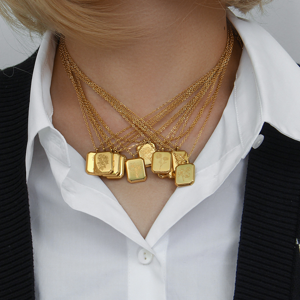 Fashionable Square Embossed Necklace For Women