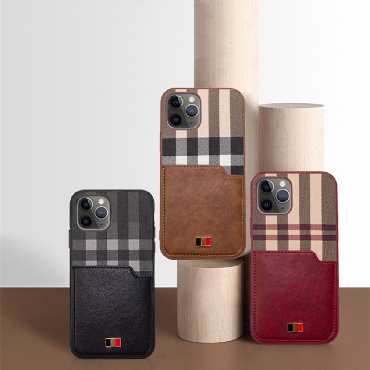 Color: brick red, black, dark brown