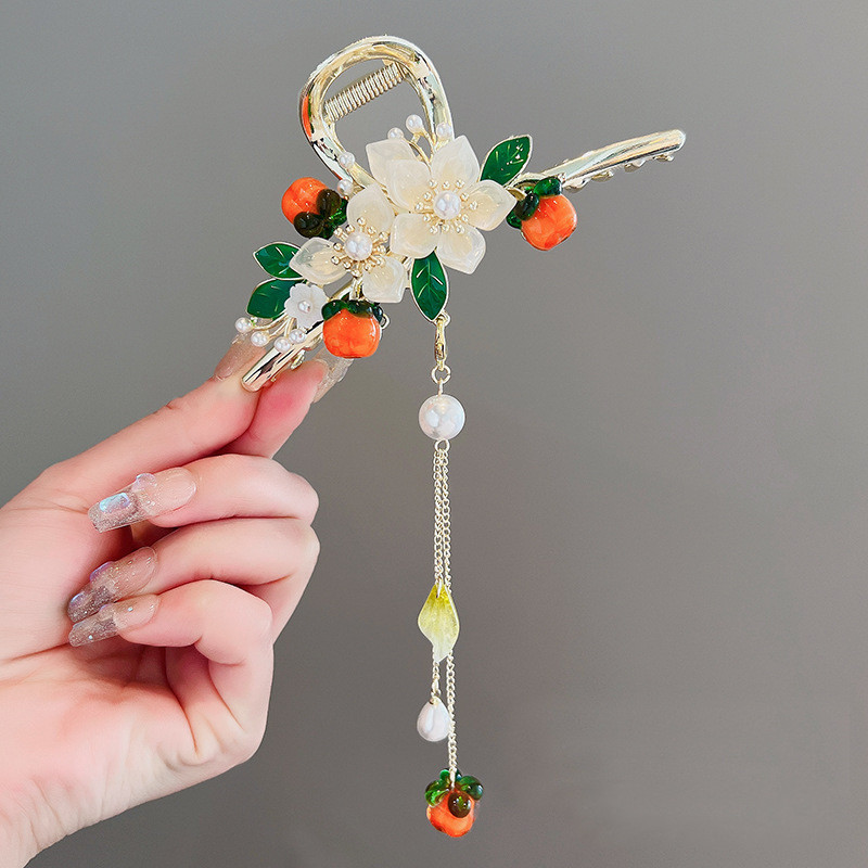 Color: Persimmon Ruyi Clasp, Antique Pink Flower Clasp, Tassel Phoenix Clasp, White Flower, Pink Flower, Gradient Butterfly Style