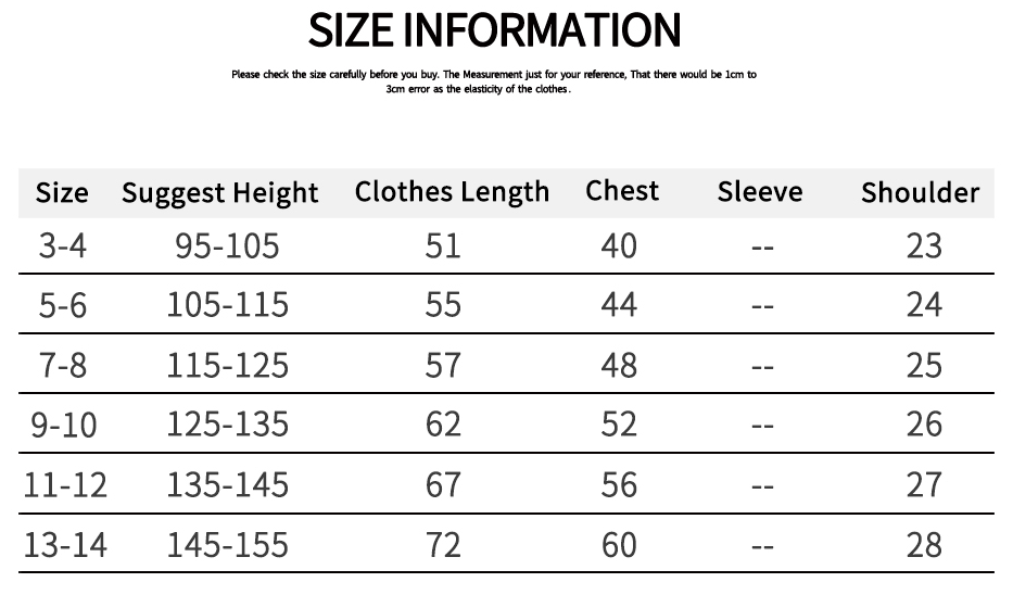 Size: 110cm, 120cm, 130cm, 140cm, 150cm, 160cm