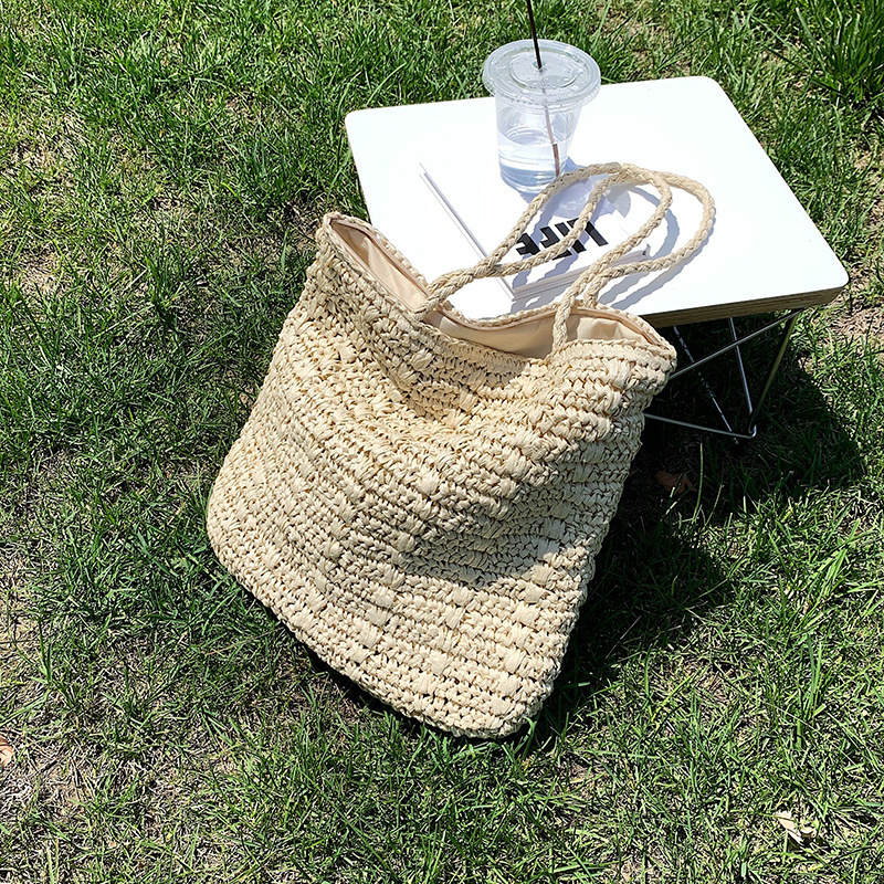 Color: white, khakiMaterial: StrawSize: 36*40*2cmLining texture: polyesterOpening method: open