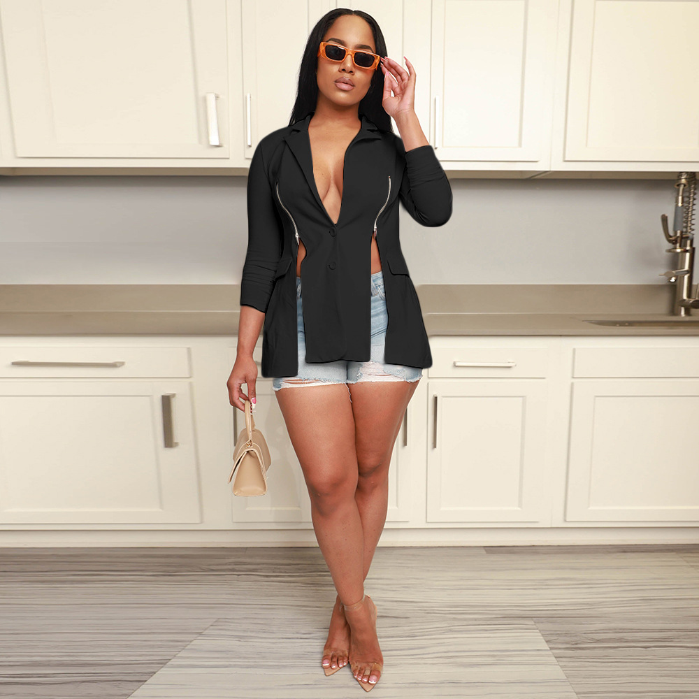 Fashionable With Side-slit Long-sleeve Zipper Lapel Suit