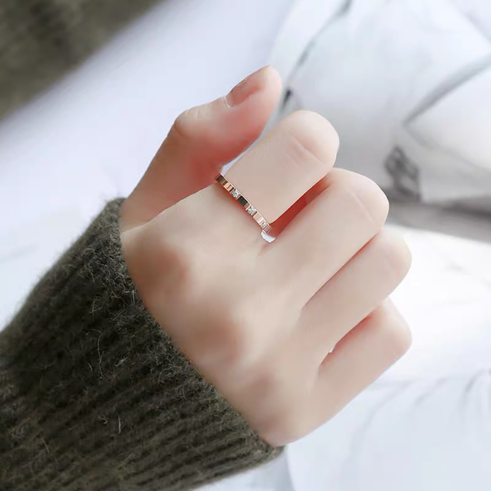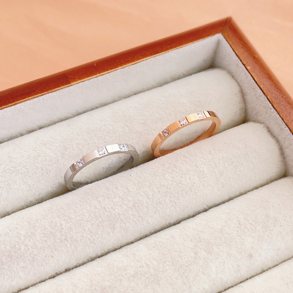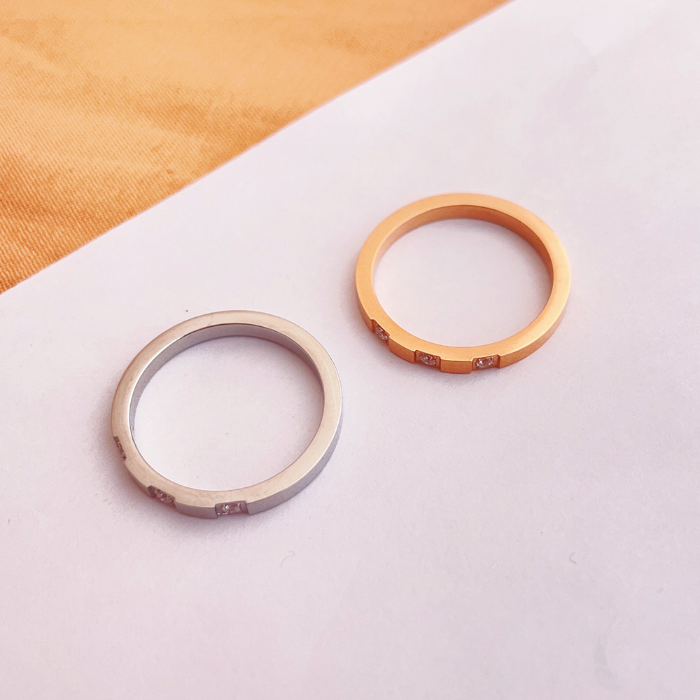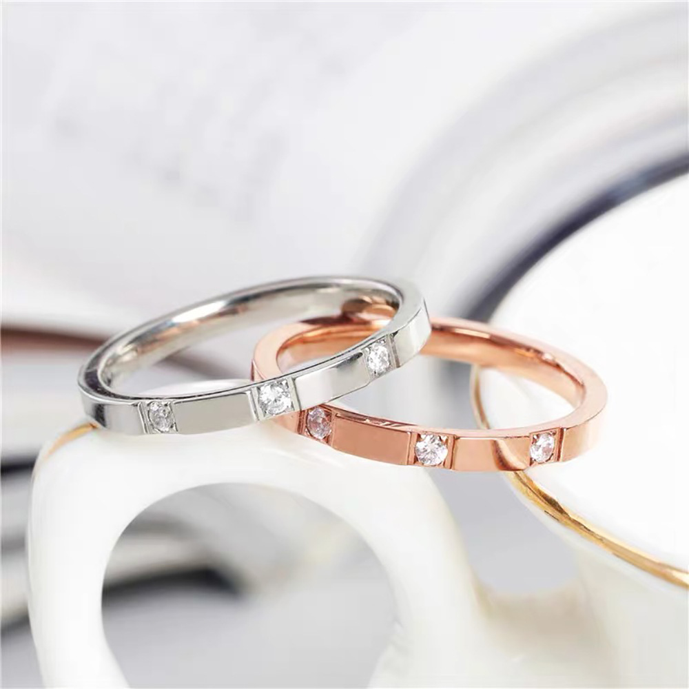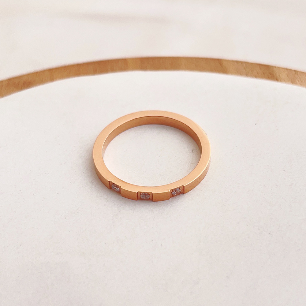 Colors: Three-Diamond Ring, Rose Gold J22; Three-Diamond Ring, Steel Color J23