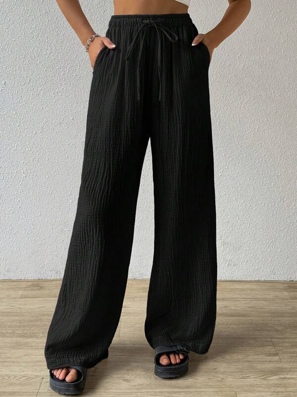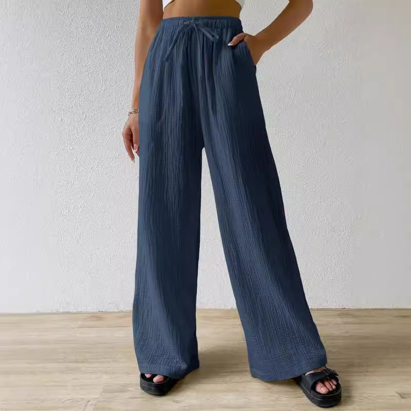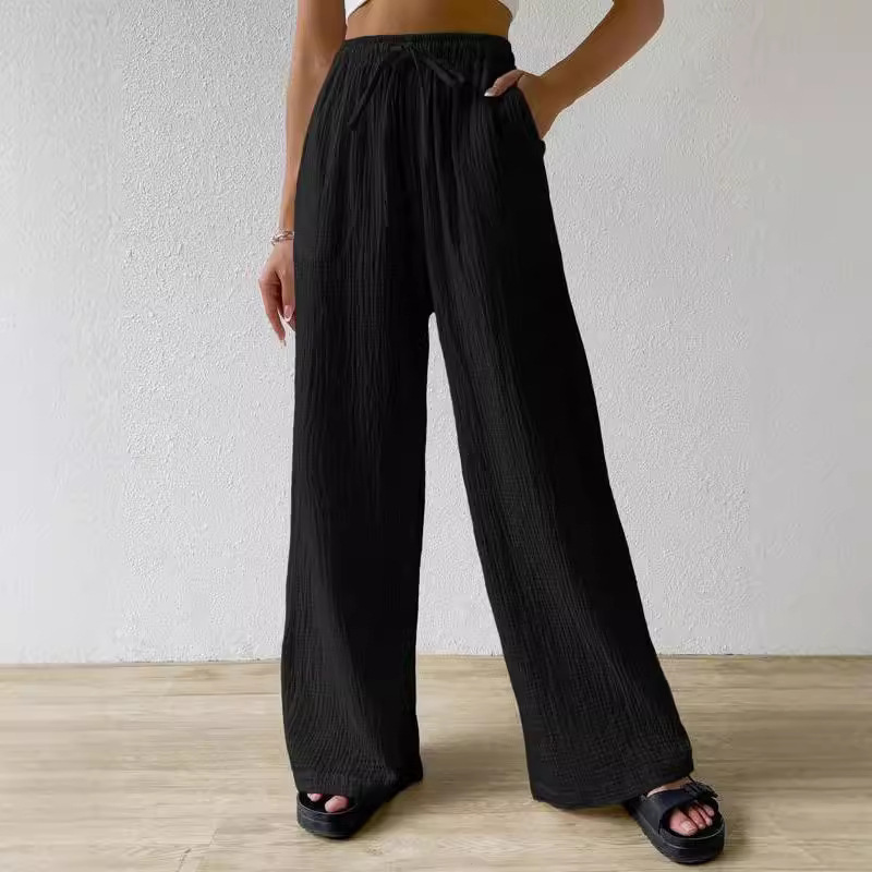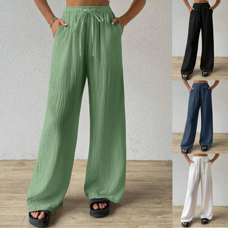 Fashionable Womens Versatile Elastic Waist Casual Wide-Leg Pants