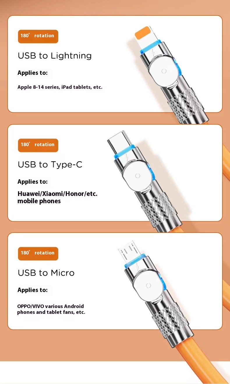 Product information:Features: mobile game elbow USB cableInterface: Lightning,Micro USB,TYPE-CMaterial: Silicone