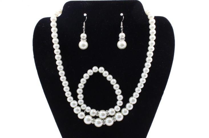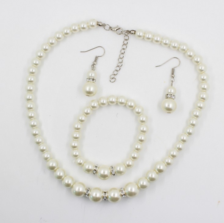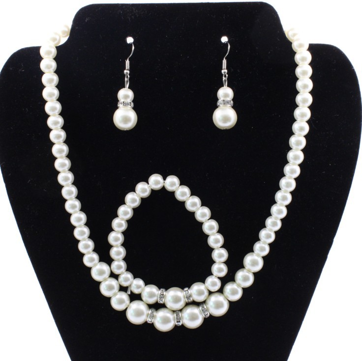 Fast sell hot bridal decorations, wedding jewelry set, pearl necklace, earring, bracelet wholesale