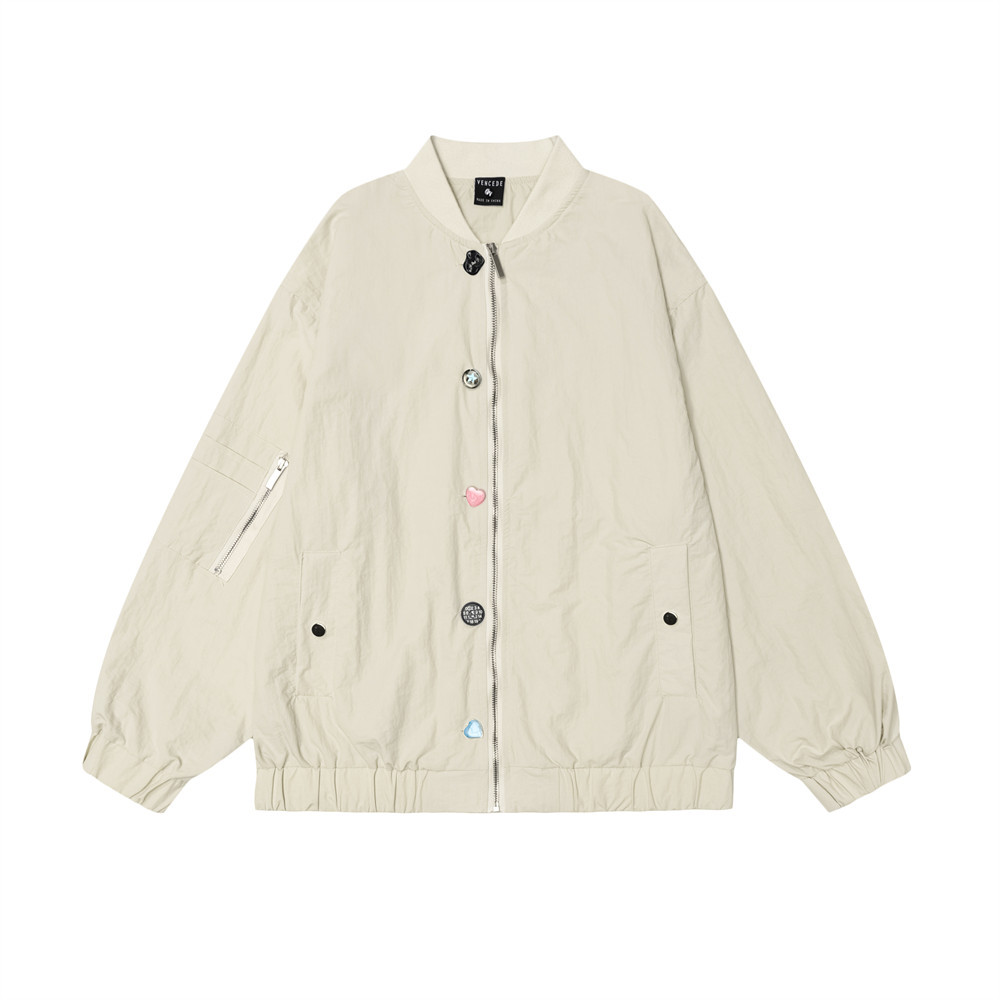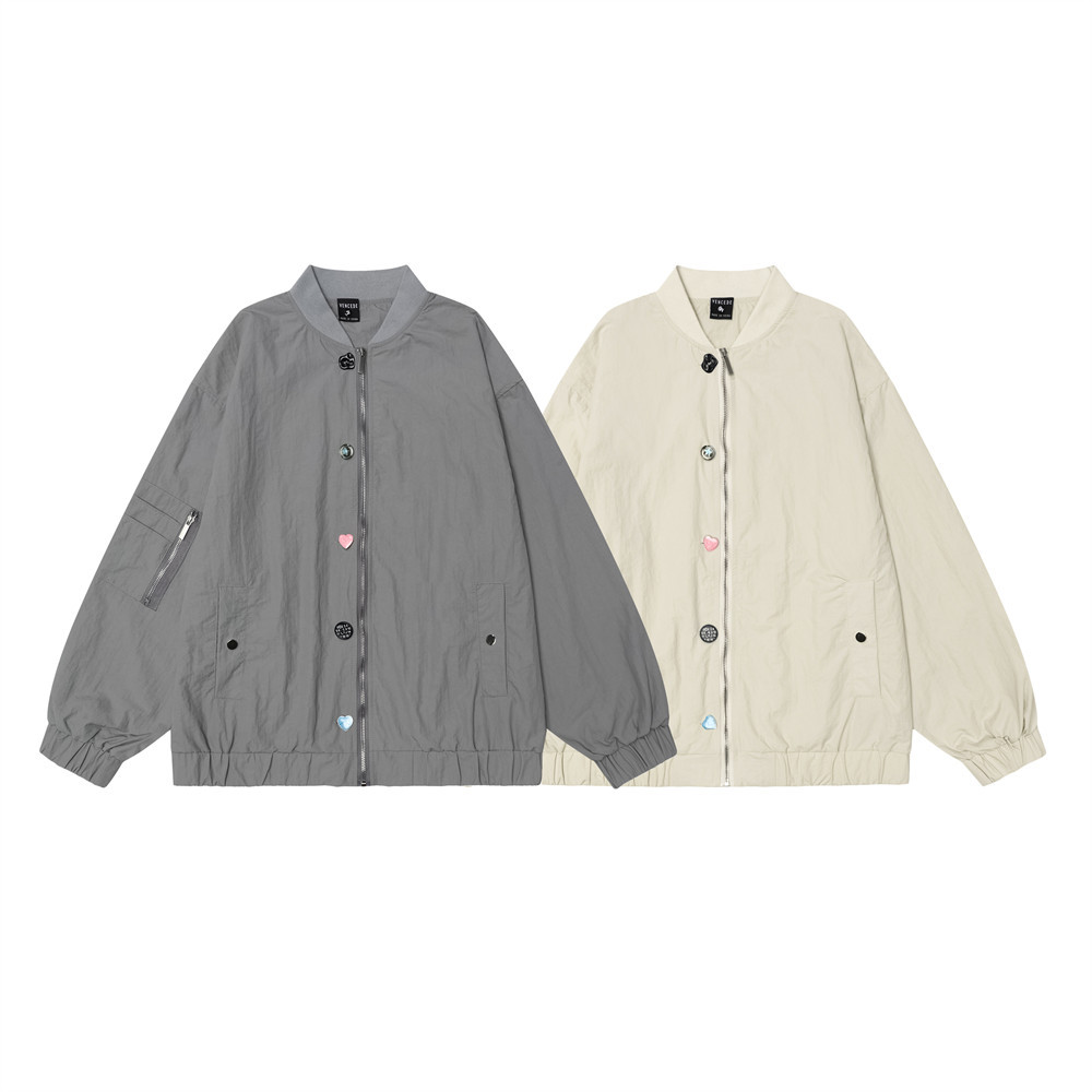 Fastener Decoration Design Color Matching Zipped Stand Collar Jacket