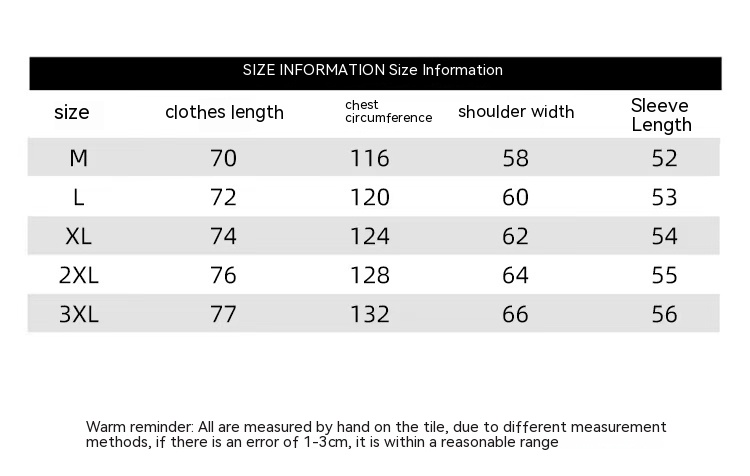 Size: M L XL 2XL 3XL
