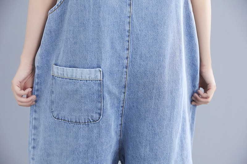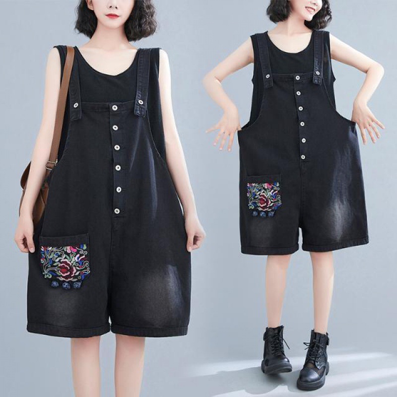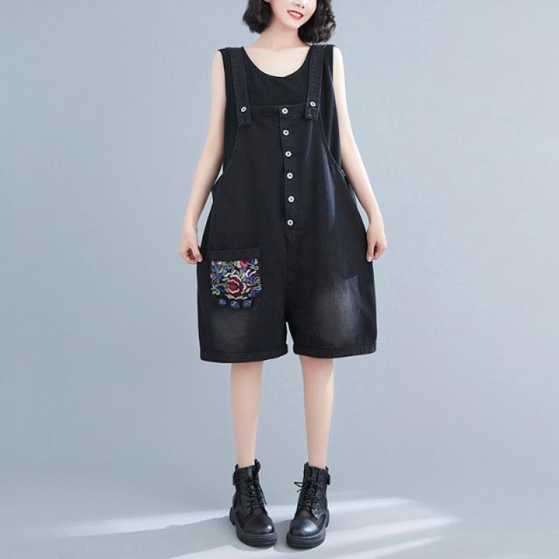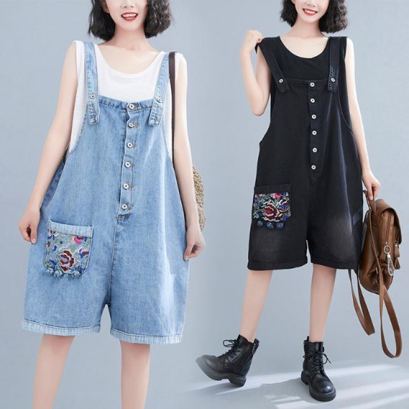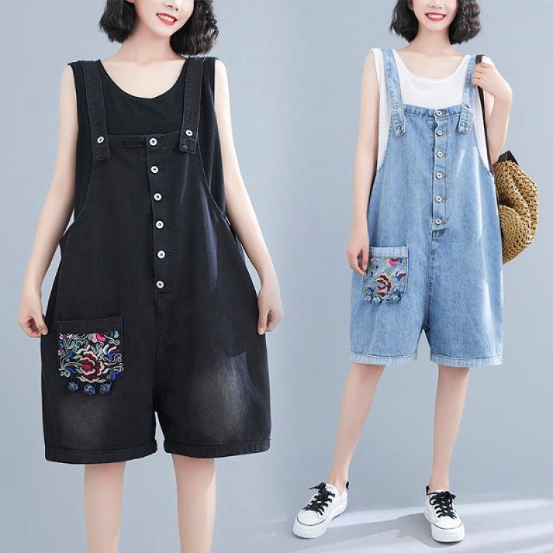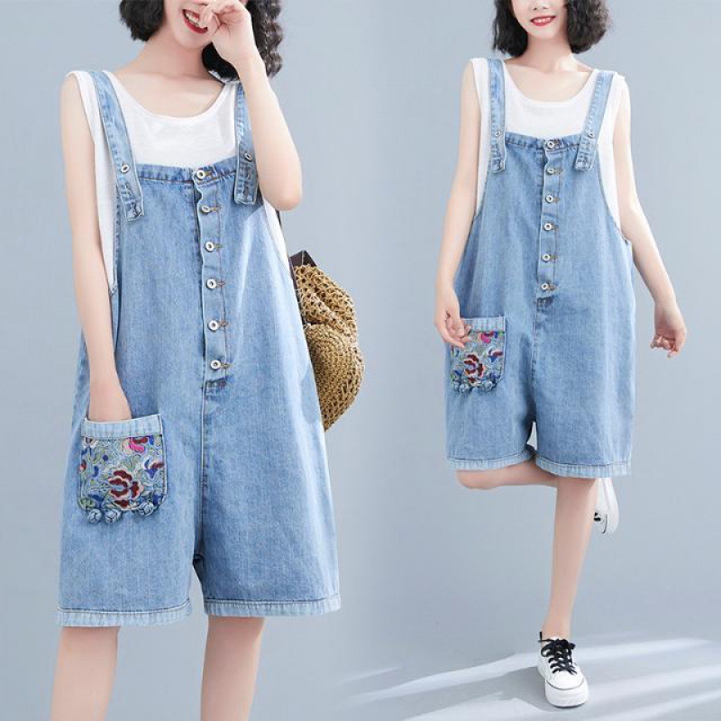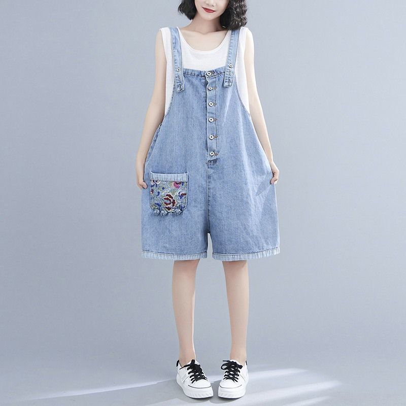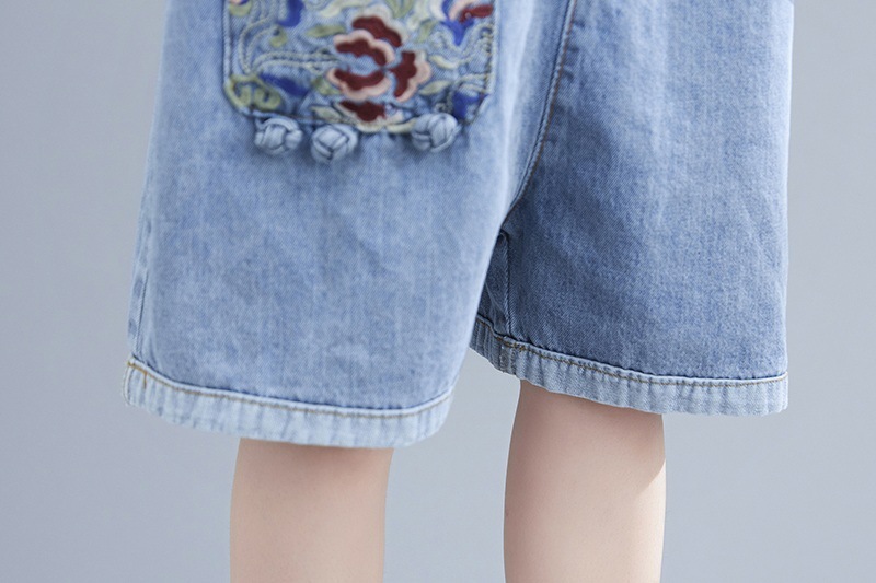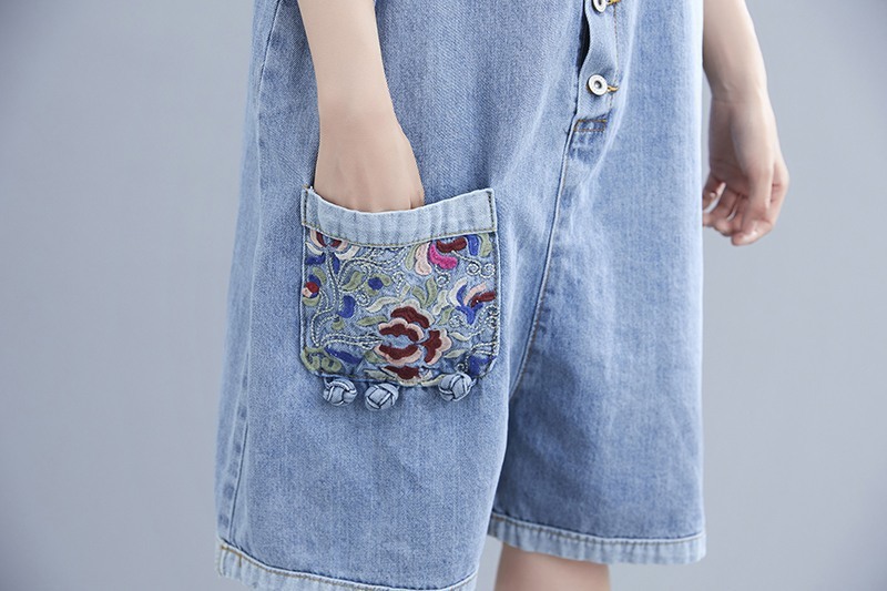 Fat Mm Artistic Style Embroidered Denim Suspenders
