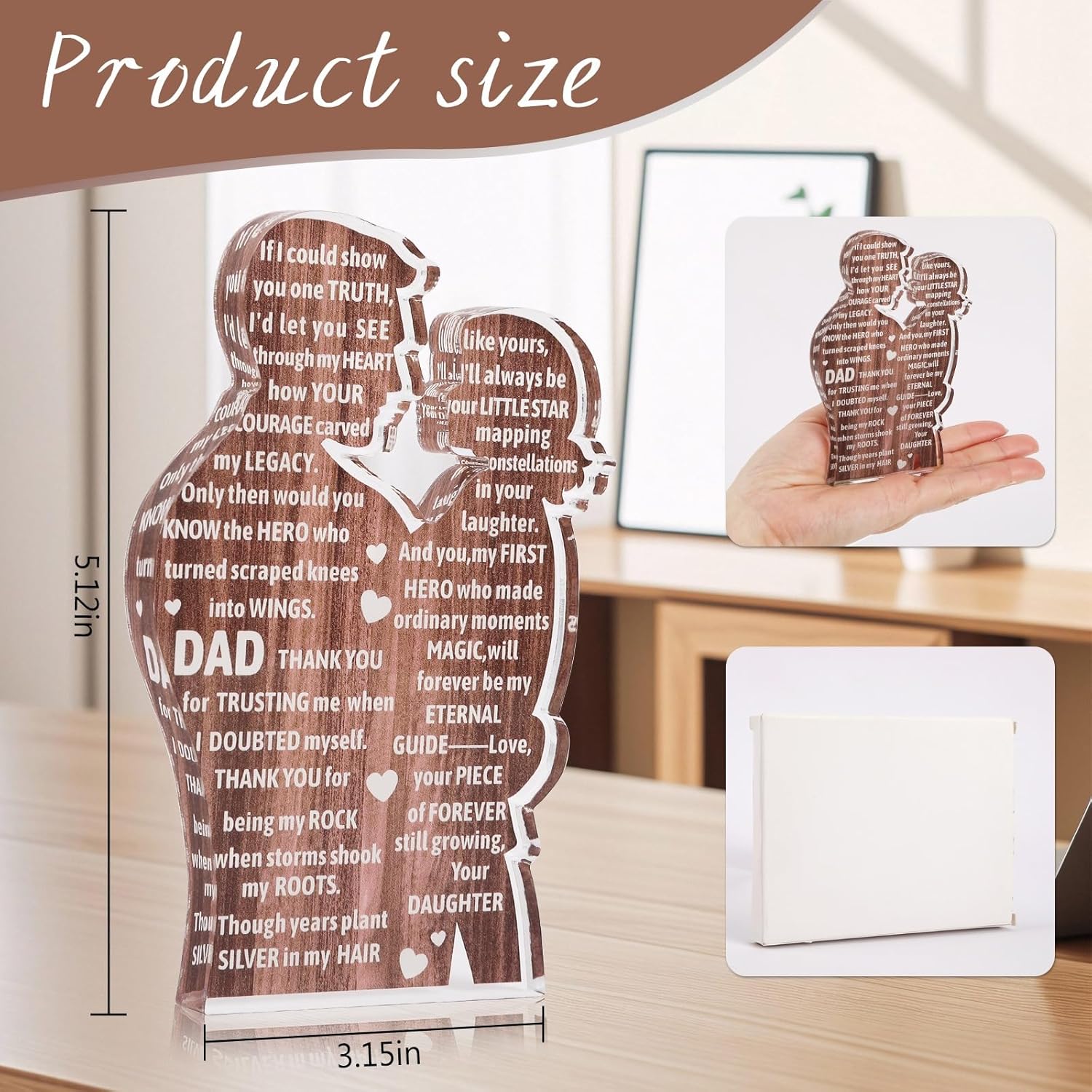 The dad gifts from daughter is an eternal way for daughter to express her love and gratitude. The original intention of the design is to become a treasured keepsake to convey feelings that words can't express, so that fathers can truly feel the gratitude and care hidden in heart.