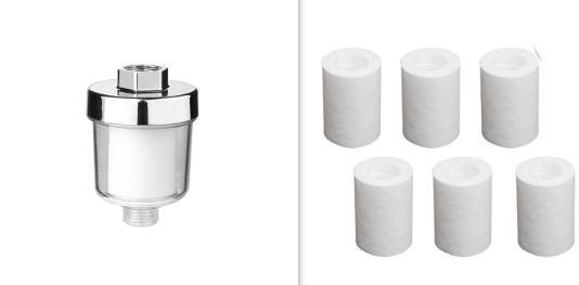 Product name: shower filterMain material: polyester fiber PP cotton + PCFilter element life:-generally 3-6 months to replace once-once