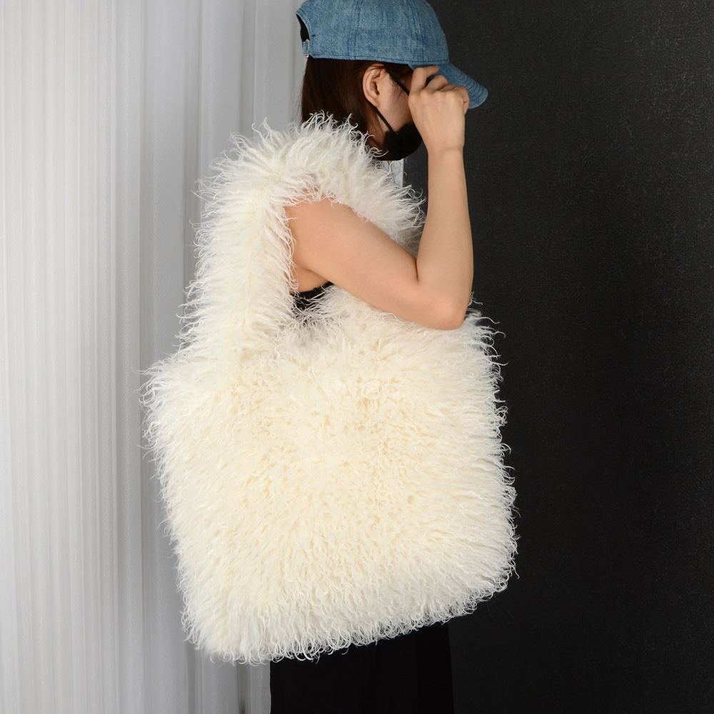 Faux Fur Beach Wool Plush Bag Portable Shoulder Large Capacity Totes