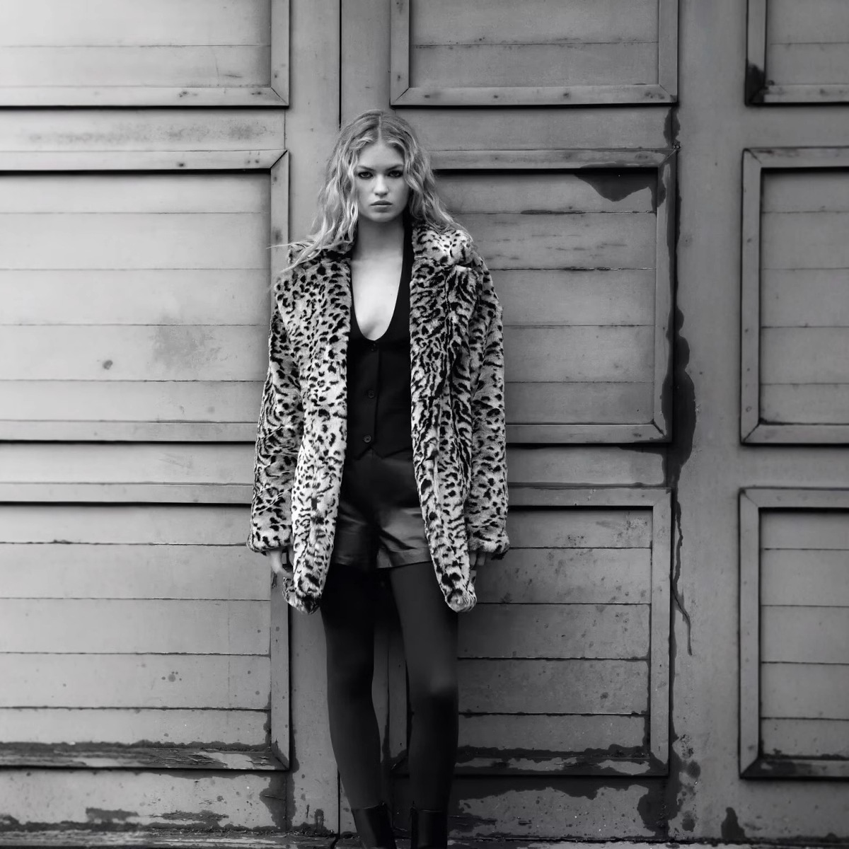 Faux Fur Effect Fashion Leopard Print Mid-length Coat
