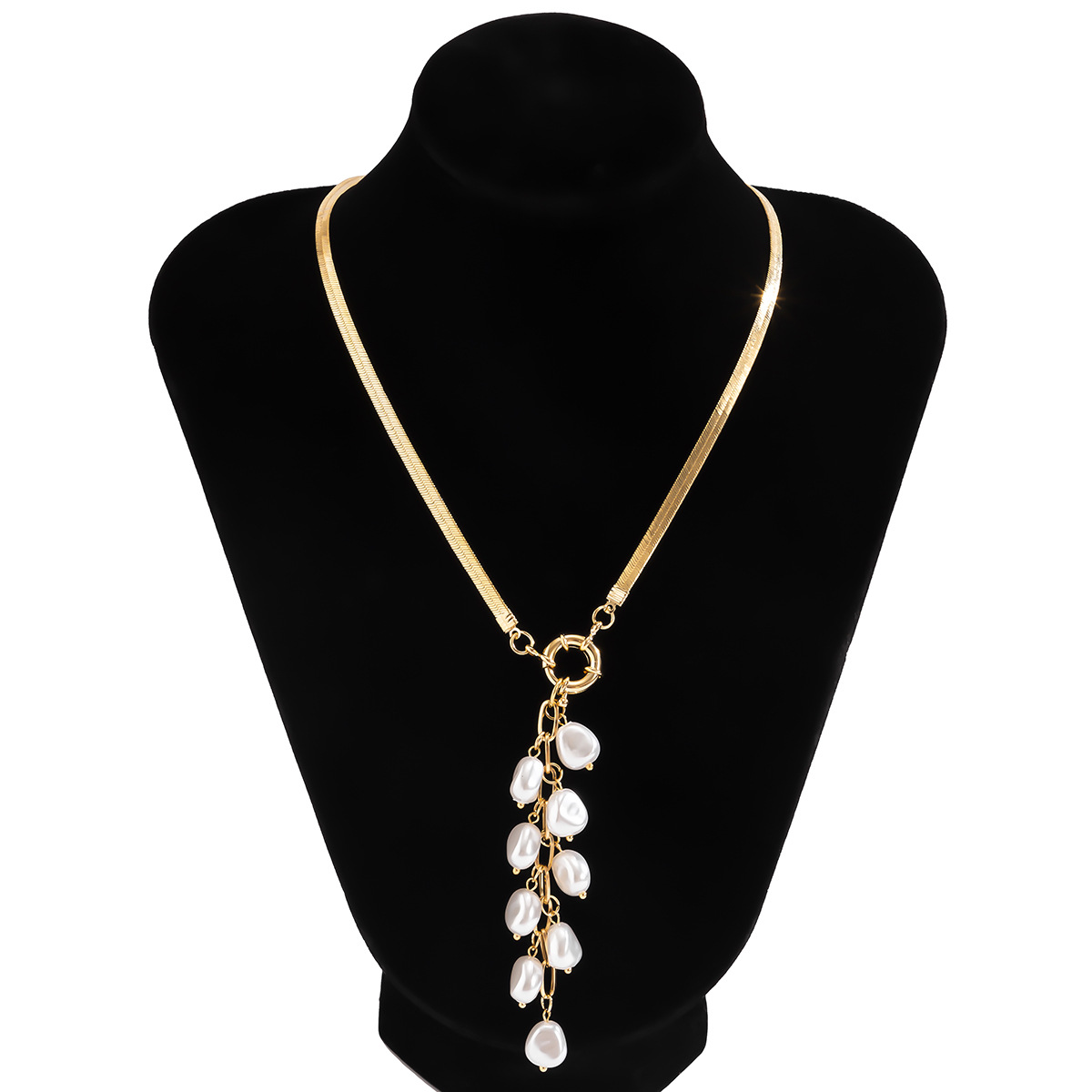 Faux Pearl Tassel Necklace With Vintage Geometry