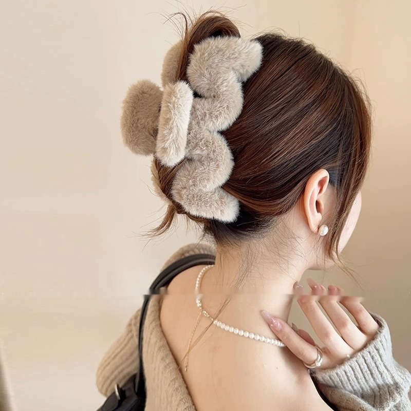 Color: Big Black M fluff grip 13.5cm, milk tea big color M fluff grip 13.5cm, cream-white big color M fluff grip 13.5cm, dark coffee big color M fluff grip 13.5cm, light pink large color M long hair grip 13.5cm, deep pink large M long hair grip 13.5cm, minmin Black large M long hair grip 13.5cm, minmin pink large M long hair grip 13.5cm, minmin cream-white M long hair grip 13.5cm, minmin black coffee M long hair grip 13.5cm