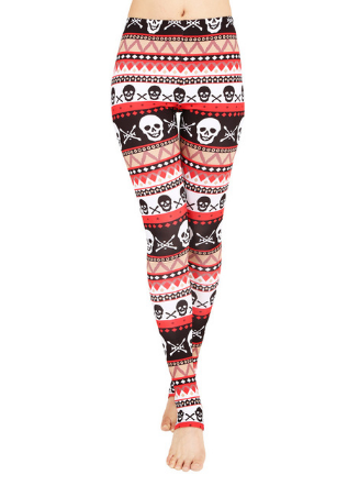 FCCEXIO Yeni Xmas Aztek Pembe Kafatasları Baskılı Tozluk Adım Ayak Tayt Retro Rahat Ince Yüksek Bel Streç Fitness Legins