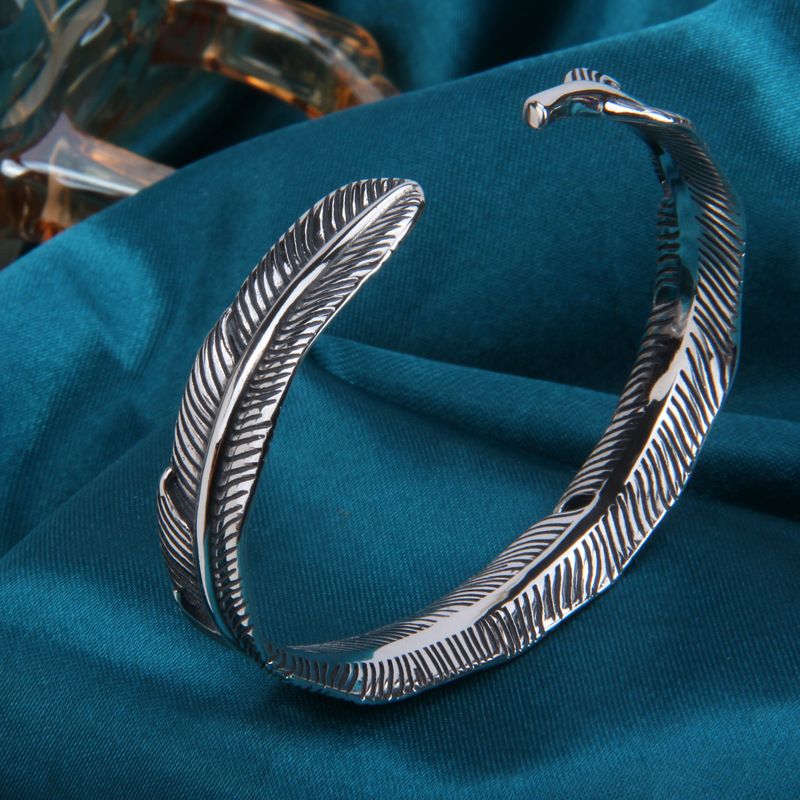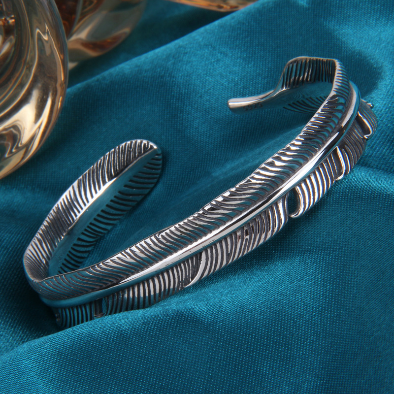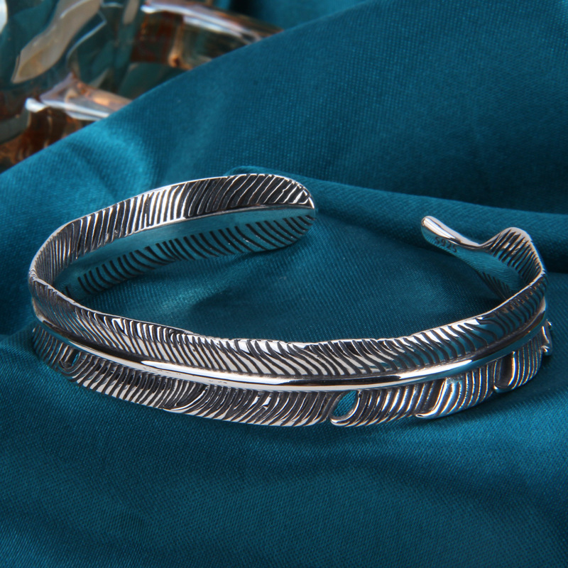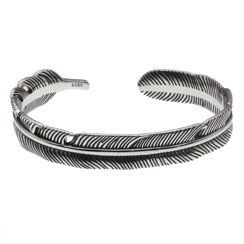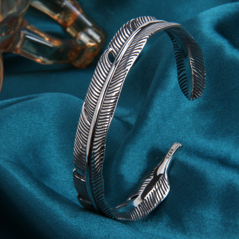 Feather Bracelet Fashion Retro Personality Light Luxury Men's Silver Bracelet