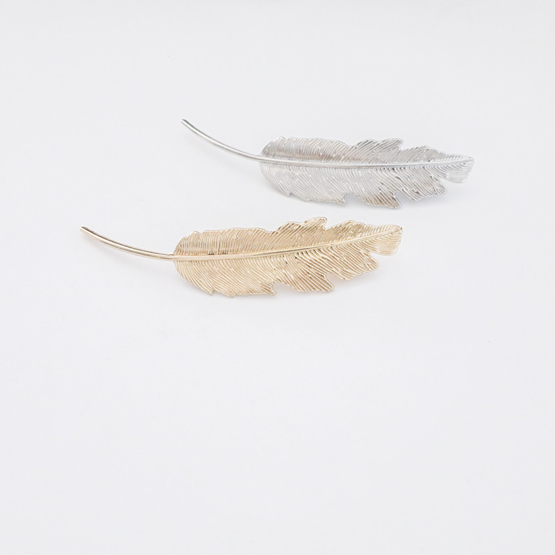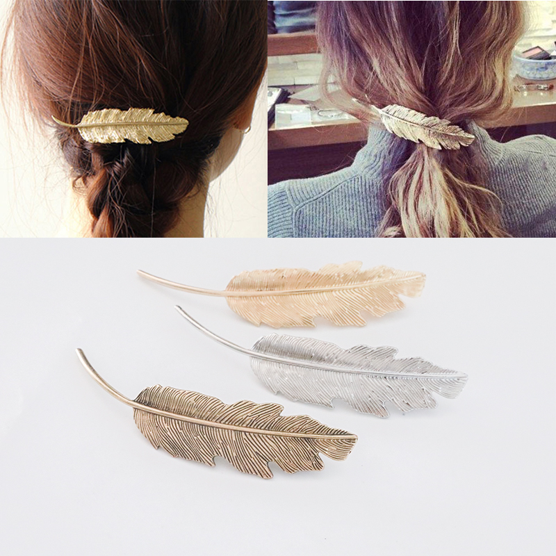 Korean net red feather hairpin antique clip headdress back head hairpin bangs elegant retro leaf side clip