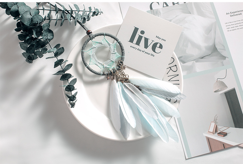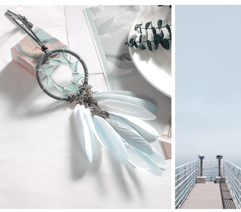 Material: duck feather, iron ring, vintage accessories, wooden beads