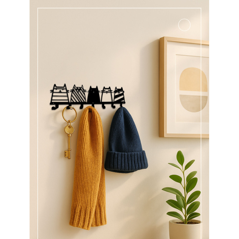 Feline Utility Hooks Wall Organizer W Hooks - Space-Saving Pet Lover Key Rack