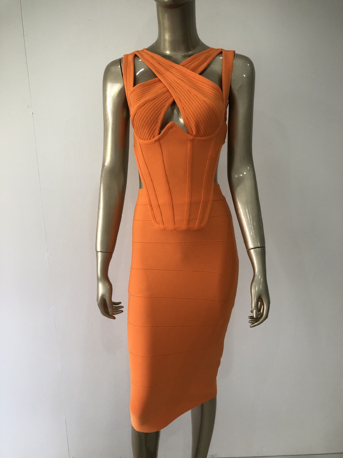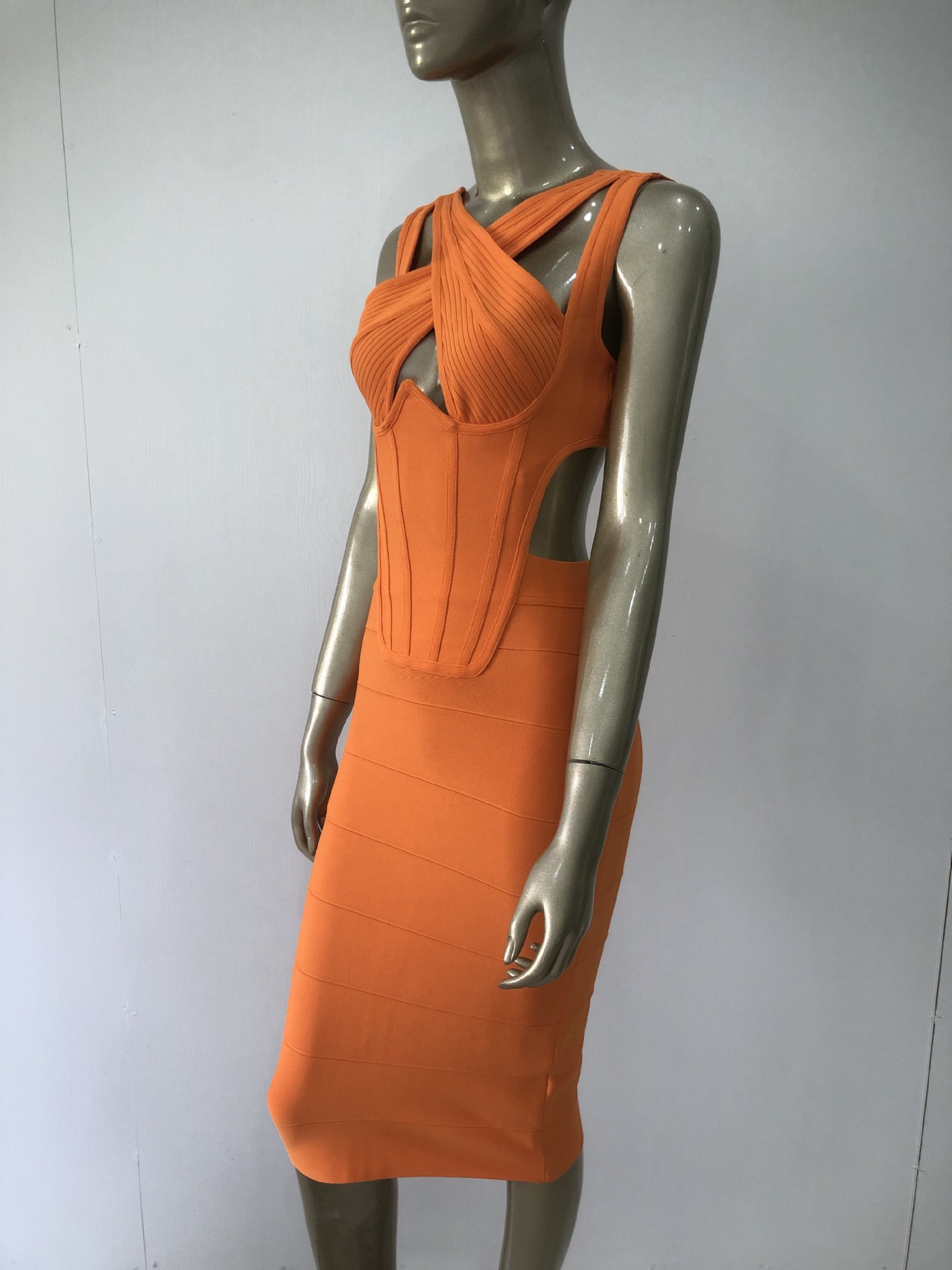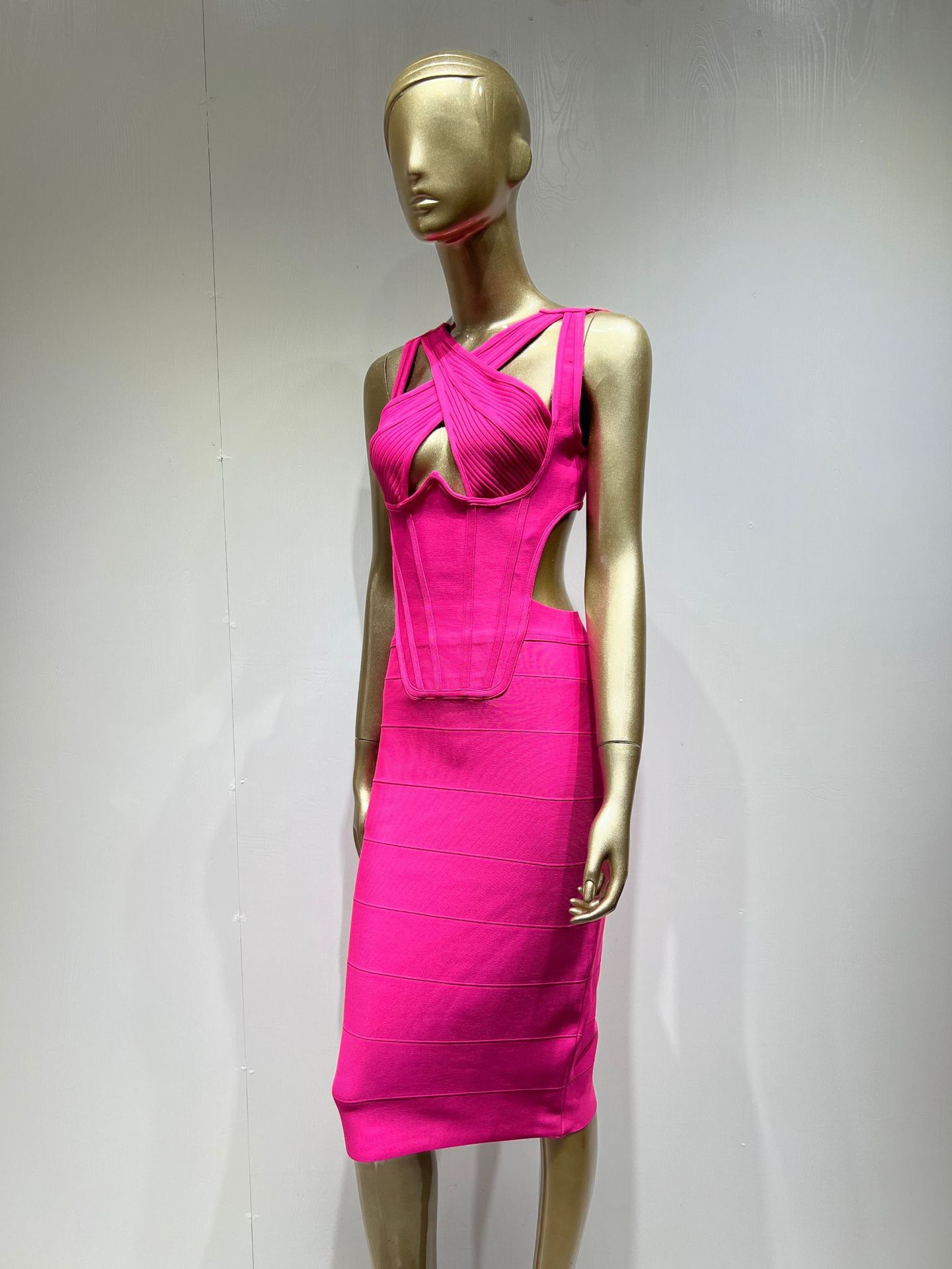 Female Bandage Hollow Out Cinched Waist Slim-fit Dress