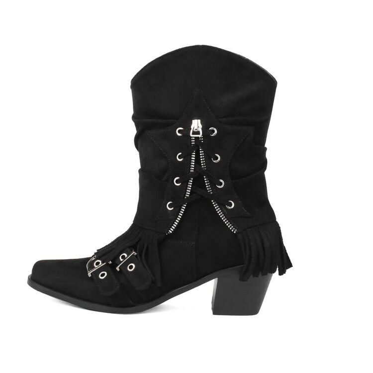Female Boots Fleece-lined Tassel Buckle Pleated