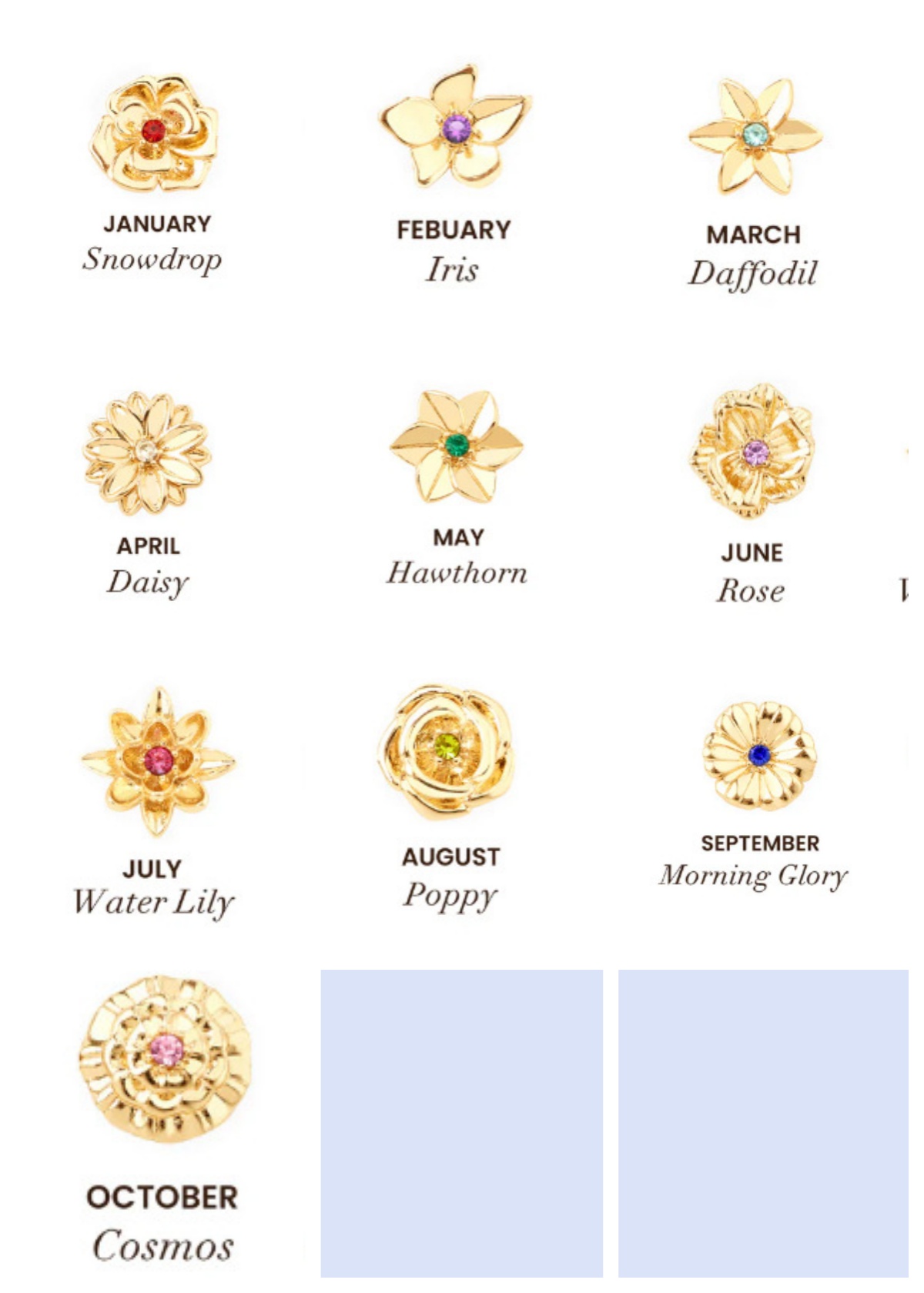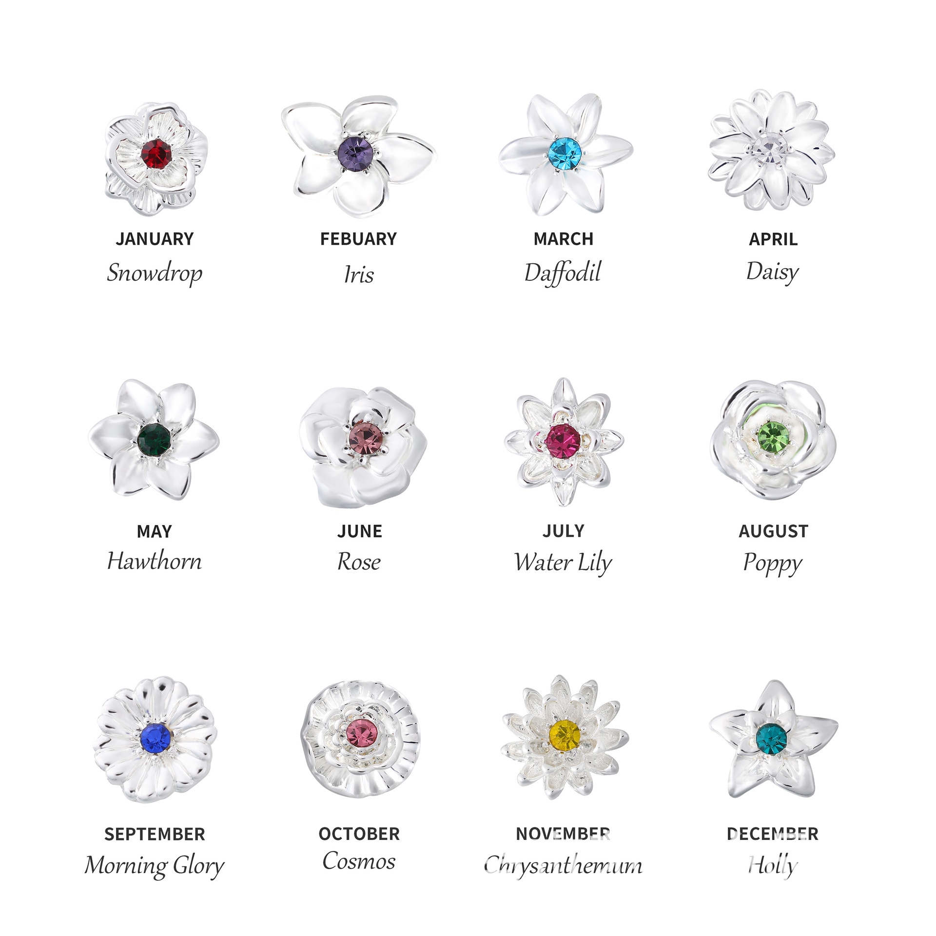 Color: January, February, March, April, May, June, July, August, September, October, November, December