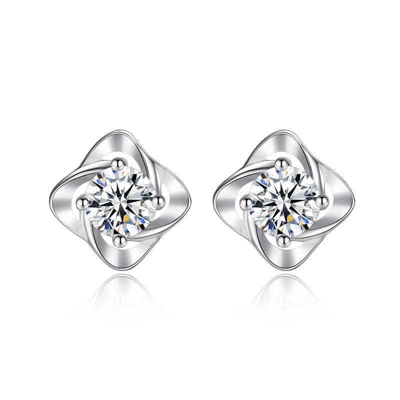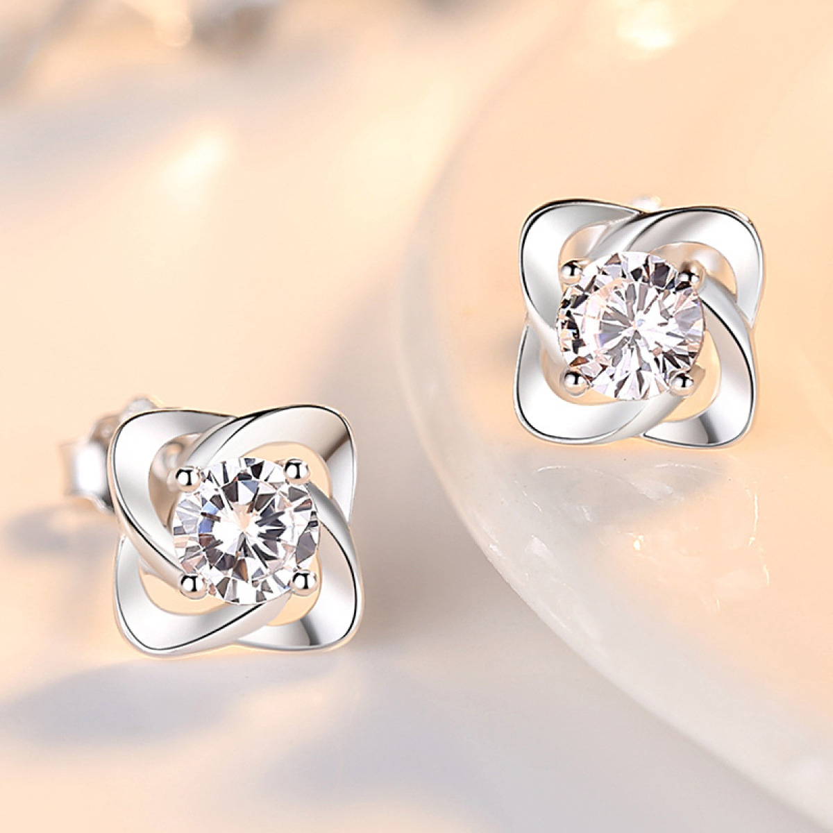 Female Creative S999 Pure Silver Four Leaf Clover Ear Stud